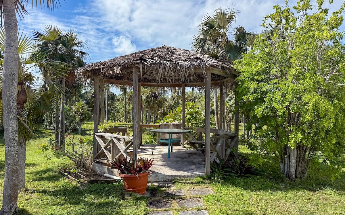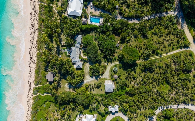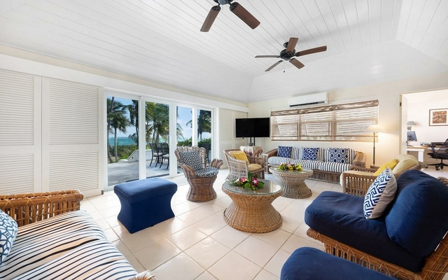 Set along the famed pink sands of Double Bay, Senza Nome is a rare and historic beachfront estate offering timeless Bahamian charm, modern comfort, and unmatched natural beauty. Spanning 4 acres of lush, tropically landscaped grounds with 280 feet of pristine pink-sand beachfront, this remarkable property includes a beautifully appointed 2,620 sq. ft. main residence with 3 bedrooms and 3 full baths, an elegant 625 sq. ft. studio apartment positioned above a 625 sq. ft. garage, and a beloved 540 sq. ft. 1952 beachfront cottage—the oldest structure on Double Bay and a true island treasure. From the moment you arrive, Senza Nome feels like a world apart. Traditional Bahamian tray ceilings, handcrafted details, and curated design elements—such as chinois solid brass door hardware, hand-painted furnishings, and Italian artisanal tile—imbue the home with character and refinement. At over 115 feet long, the elevated main house commands sweeping, cinematic views of the turquoise Atlantic from nearly every room, while one serene bedroom overlooks a secluded, walled garden sanctuary
