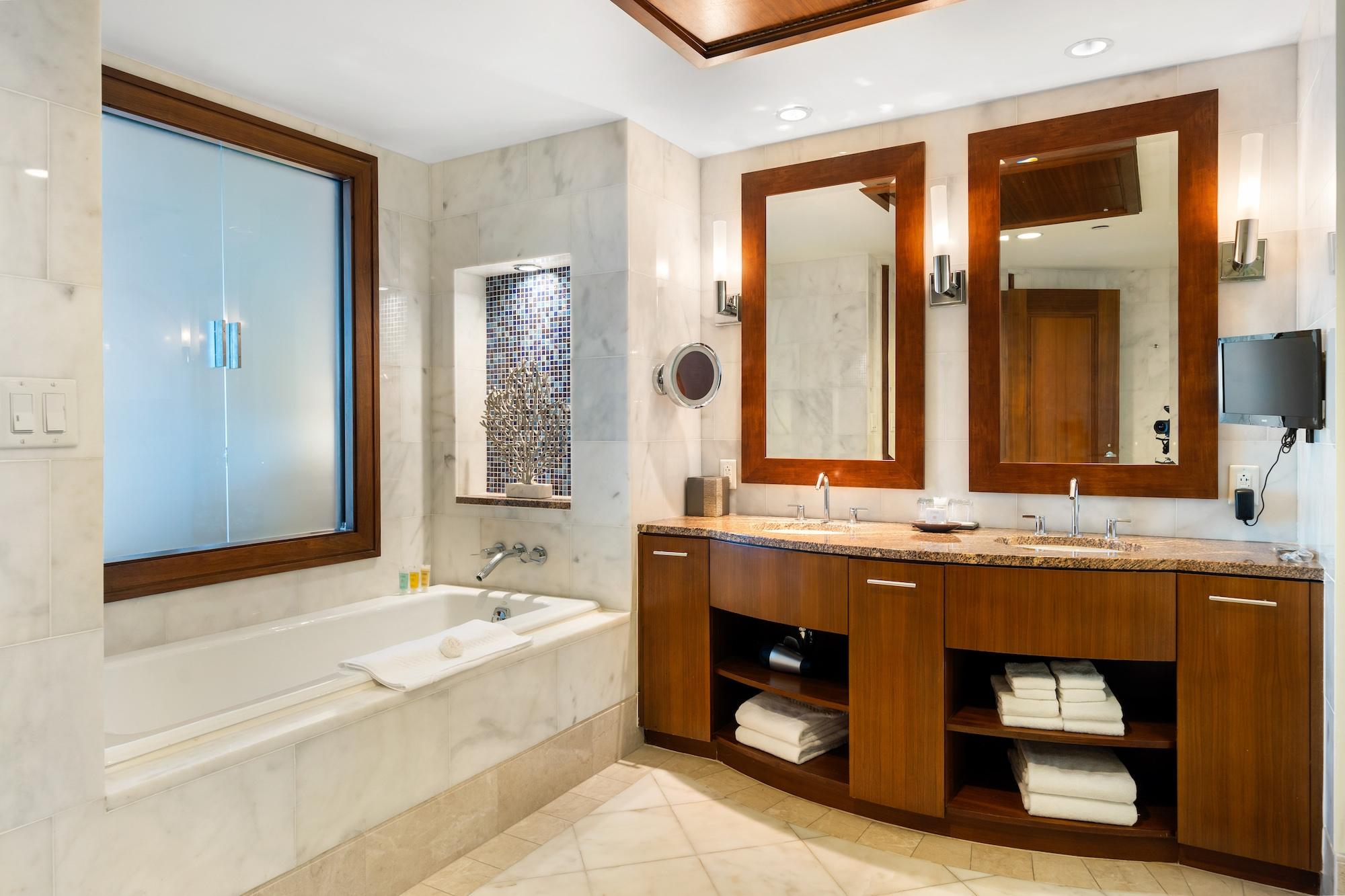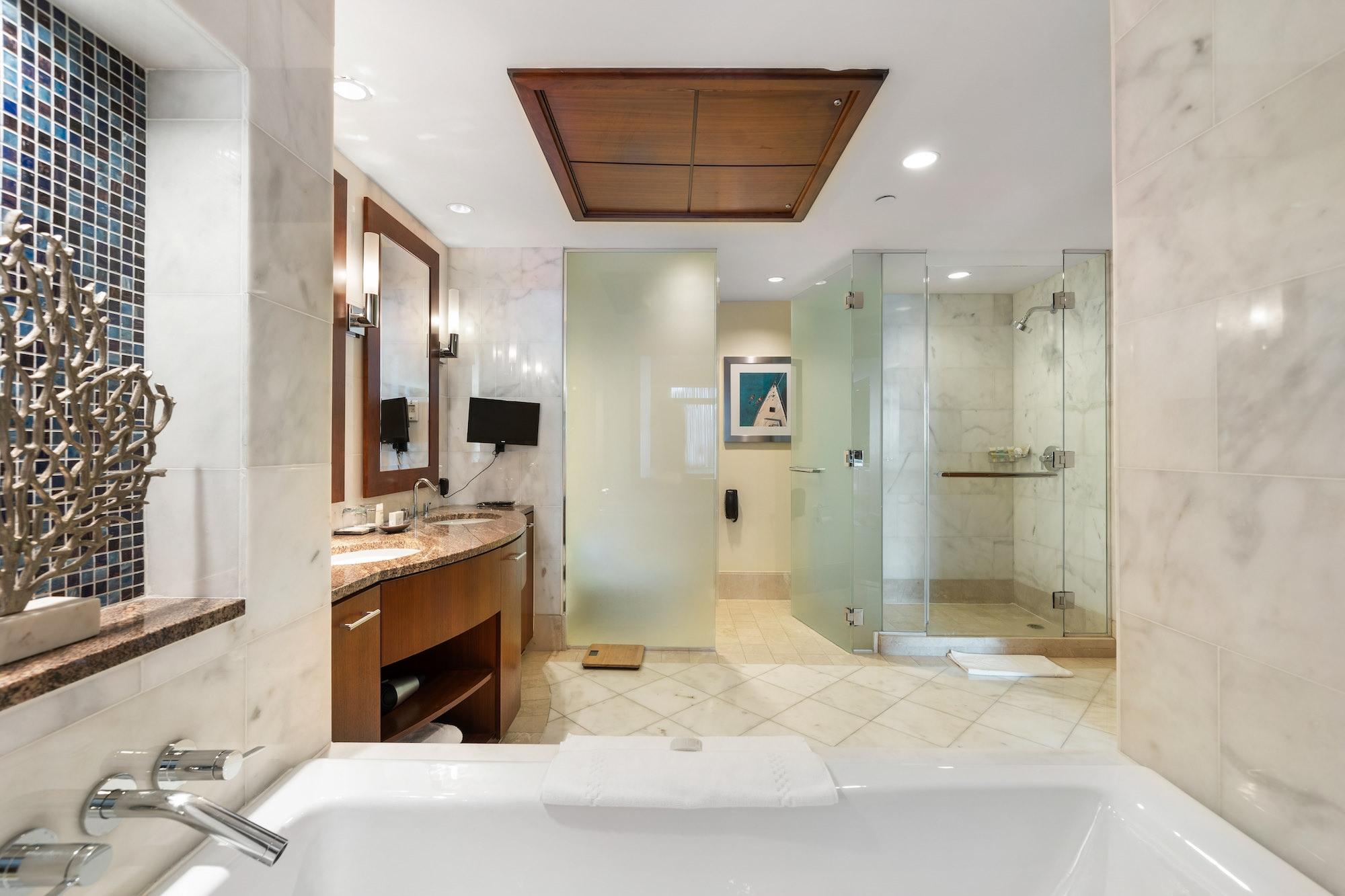 This is an 18th floor, two bedroom with amazing views of Nassau Harbour, Harbour lighthouse, and the beach. The Reef Residences at Atlantis is the only building on the beach at Atlantis that offers full kitchens. The Reef now brags of its newly remodel elegant suites, fully furnished, from linens to tableware, and features a wide array of custom interior amenities such as crown molding, granite counter-tops, and fine European kitchen cabinetry. Owners of The Residence at Atlantis (The Reef) have exclusive access to their own private gym, a Starbucks Cafe conveniently located in the lobby, and an owner’s concierge team is available to assist with everything from dinner reservations to in-house massages and cocktail parties. Other amenities include access to the adult pool at the Cove and Aqua venture at Atlantis.