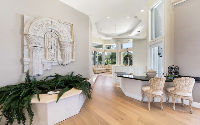 Nestled along 150 feet of stunning beach, Lot 16 is a rare find in this exclusive power sand beach community. This exceptional beachfront home offers 2,744 sq. ft. of thoughtfully designed living space, radiating a traditional island style that is both inviting and comforting. The property features a spacious master suite with direct access to the pool, complemented by an additional ensuite guest bedroom that overlooks lush gardens, ensuring relaxation and privacy for all. Enhancing the allure of this estate is a charming separate guest house spanning 688 sq. ft., complete with an open-plan living area, a full kitchen, and an upstairs loft bedroom—an ideal sanctuary for visitors. With its own 150-foot stretch of the total 300-foot beachfront, this property presents breathtaking views that must be experienced to be believed. Elegant details abound, including an etched-glass enclosed library, a chef’s kitchen equipped with premium Miele appliances, and exquisite white oak wood and marble flooring. The Ludowici roof tile adds a touch of timeless sophistication.