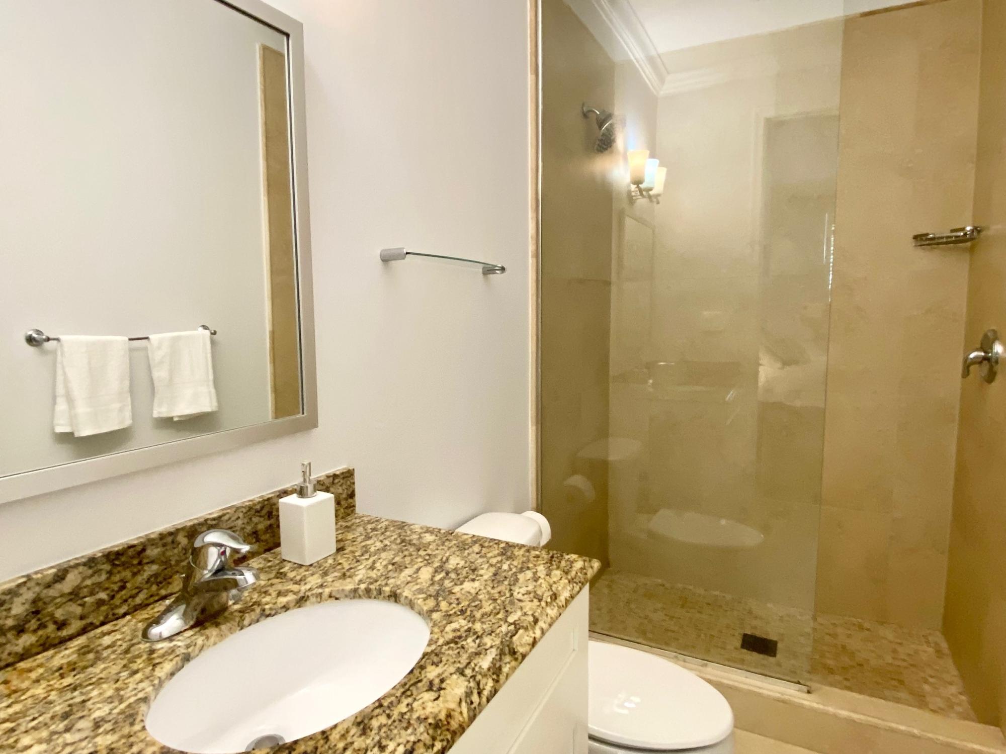 Enjoy condo living at the centrally located Balmoral Development only minutes from downtown Nassau, Nassau Airport and Cable Beach. This lovely single-story condo offers 2 spacious bedrooms and 2 bathrooms, porcelain tile floors, an open living and dining area, a den, a fully equipped kitchen with stainless appliances, a dishwasher and a microwave. There is a laundry room with washer and dryer. The master bedroom has a good sized walk-in closet and both bathrooms have granite countertops. At the back, there is a porch and garden for relaxing. Balmoral offers 24-hour security and membership to the club with 3 Har-Tru clay tennis courts and a large swimming pool. Available now on a one year minimum basis. This won’t last so contact us for a showing!