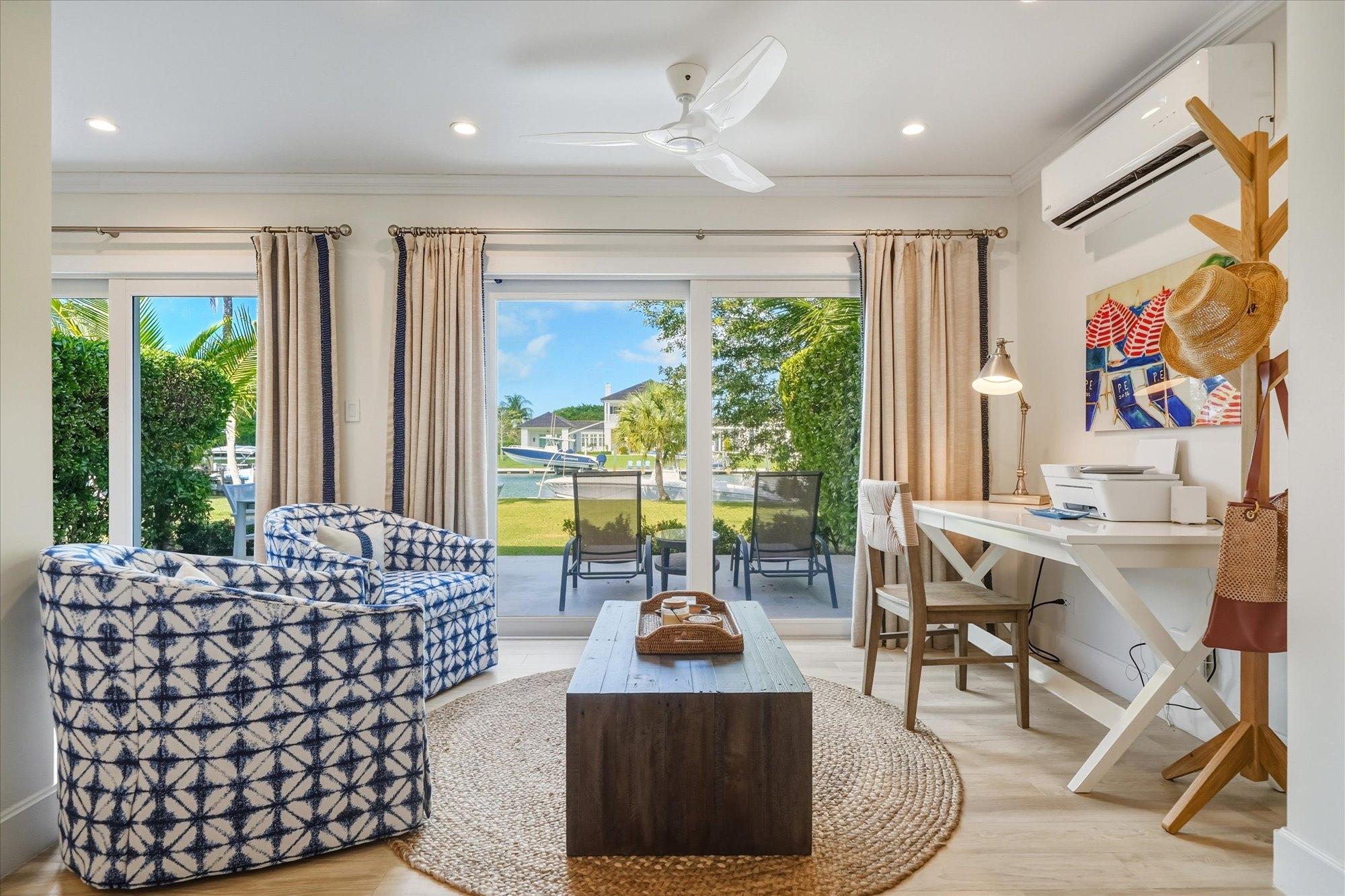 Discover contemporary elegance in this fully renovated ground-floor condominium located within the exclusive gates of Lyford Cay. This stylish two-bedroom, two-bath residence features a bright open-concept layout with clean lines, modern finishes, and seamless indoor–outdoor flow. The sleek kitchen opens to the living and dining areas, creating a relaxed yet refined space ideal for everyday living or entertaining. Both bedrooms are generously sized with beautifully updated bathrooms, offering comfort and privacy. Enjoy direct access to manicured gardens, a common-area pool, and serene canal views, with convenient dock access for boating enthusiasts. A private generator adds peace of mind. Just moments from the Lyford Cay Club, private beach, golf course, and marina, this turnkey residence offers secure, modern living in one of Nassau’s most prestigious communities.