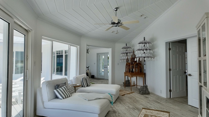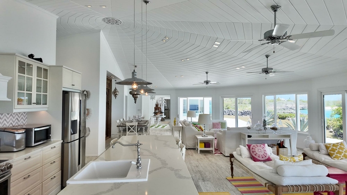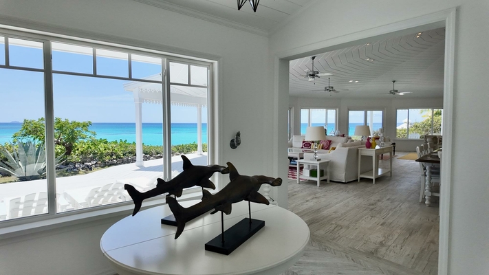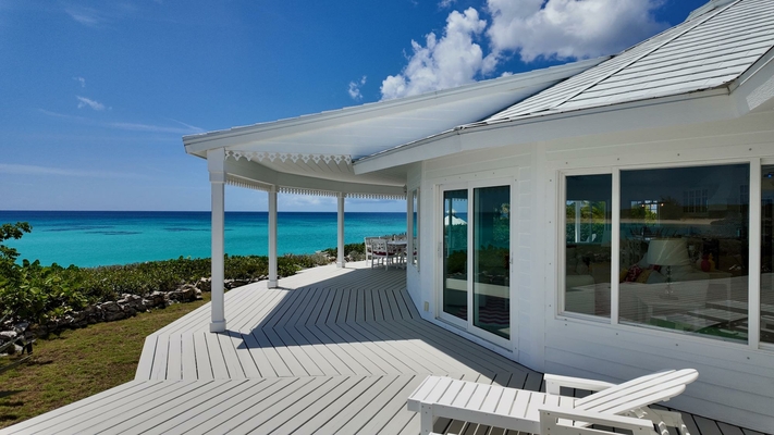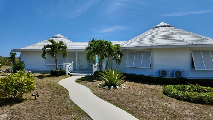 White Nights Two is a stunning 2018 Deltec oceanfront estate offering luxury, tranquility, and timeless Bahamian charm. With 215 feet of direct ocean frontage, its patented circular design provides engineered hurricane resistance and panoramic 180° views. Sunlight fills the open-plan kitchen, dining, and living areas, complemented by a dedicated TV room. The primary suite features breathtaking water views, a spa-inspired bath, and office nook, while two additional ensuite bedrooms offer comfort for family and guests. Curated pieces and décor from around the world make this home unique. Outdoors, enjoy a wraparound deck and direct sea access. A double garage, laundry, backup well, and modern infrastructure, including fiber internet and city power, ensure convenience. Like new and in pristine shape, White Nights Two is the perfect blend of elegance, durability, and serene island living.