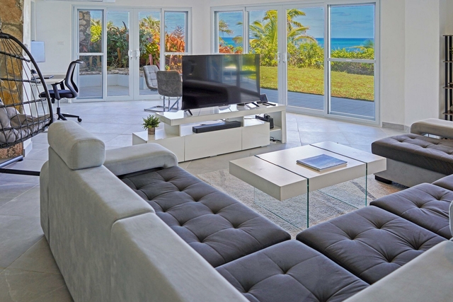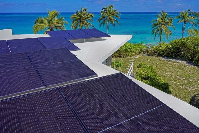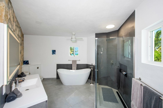 Welcome to Trident Estate, a luxurious beachfront retreat situated on the iconic pink sands of Poponi Beach, ranked among the best in the Bahamas. Designed by Ray Nathaniels, a protégé of Frank Lloyd Wright, this modern estate features a four-bedroom, four-and-a-half-bath main house and a two-bedroom, two-bath guest house, nestled within 3 private acres of lush tropical gardens. Offered fully furnished, this turnkey beachfront property features 450 feet of private beachfront and is elevated 30 feet above sea level, providing unparalleled privacy and breathtaking ocean views.