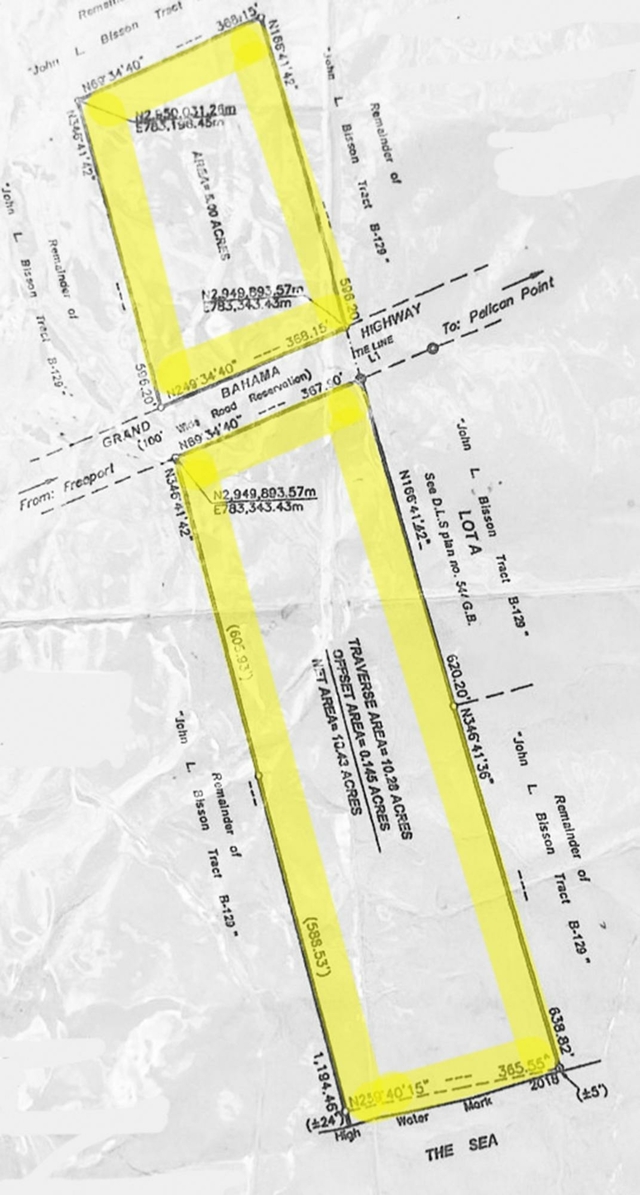Opportunity awaits with this unique 15-acre property located in the quiet and picturesque South Riding Point area, forming part of the Bisson Tract B-129 and adjacent to the Mount Pleasant Subdivision. This offering includes two distinct parcels positioned on both sides of the Grand Bahama Highway, providing excellent access, versatility, and development potential. Property Highlights: Total Size:43 acres Northern Parcel: 5 acres situated north of the Grand Bahama Highway Southern Parcel: 10-acre beachfront tract Beach Frontage: Approximately 365 feet of pristine shoreline Highway Frontage: Both parcels offer just over 360 feet along the Grand Bahama Highway Zoning: Open zoning, allowing for a variety of commercial or residential development possibilities Location: South Riding Point, East Grand Bahama — a peaceful and steadily developing area close to nearby communities and amenities This property presents an exceptional opportunity for investors, developers, or those seeking expansive beachfront land for a private estate, boutique resort, or mixed-use project.