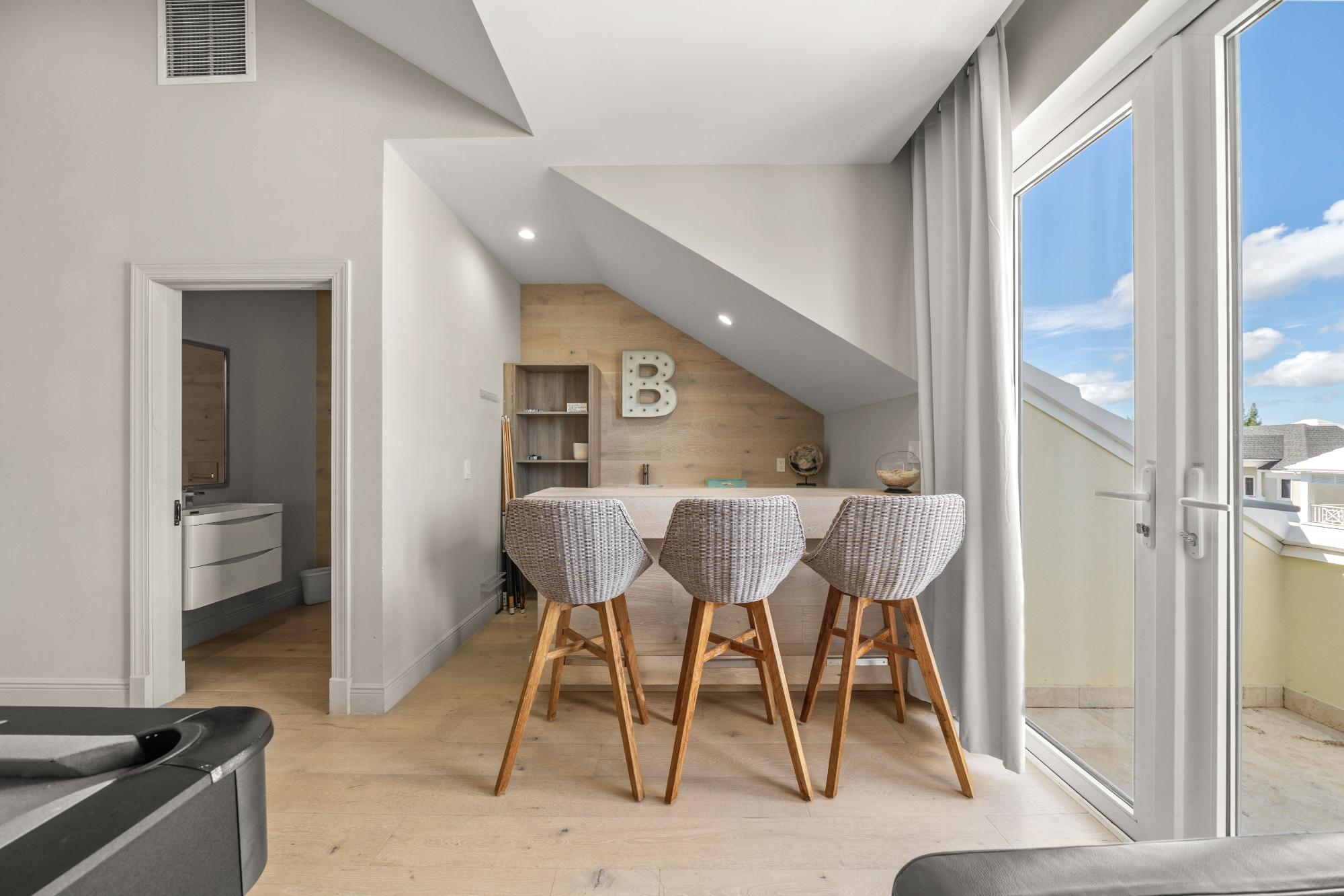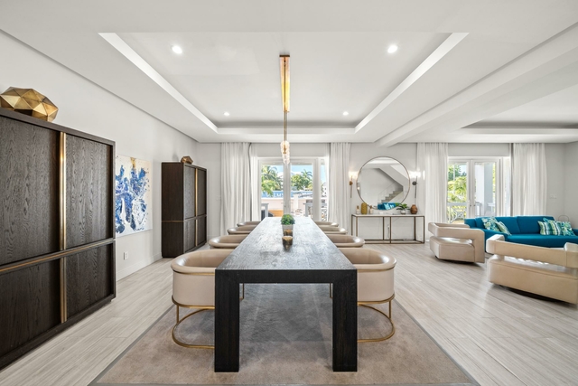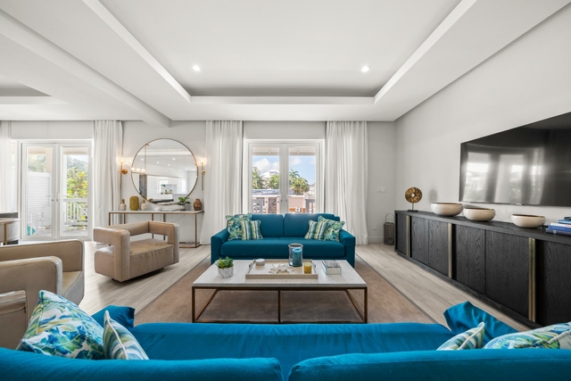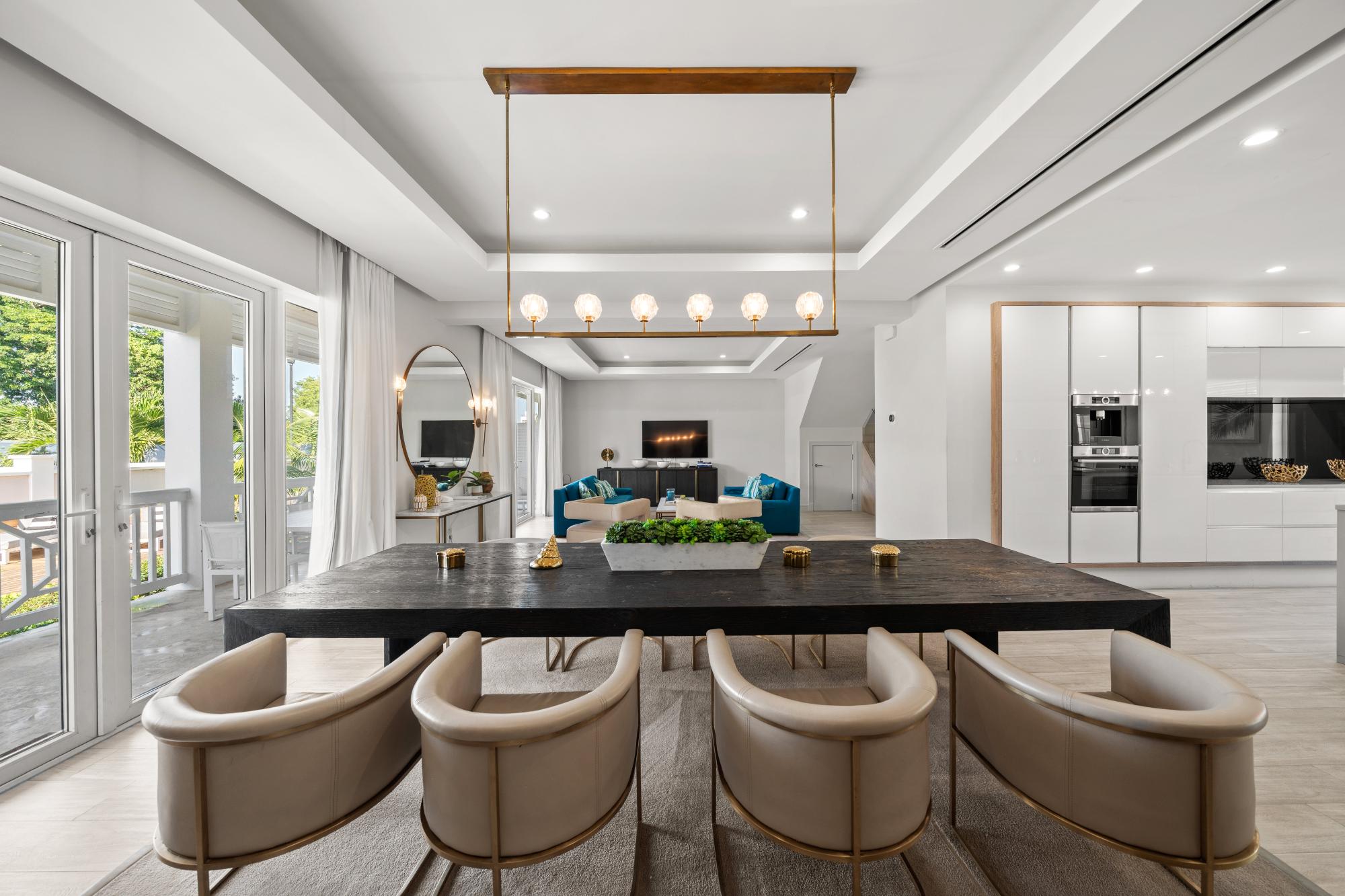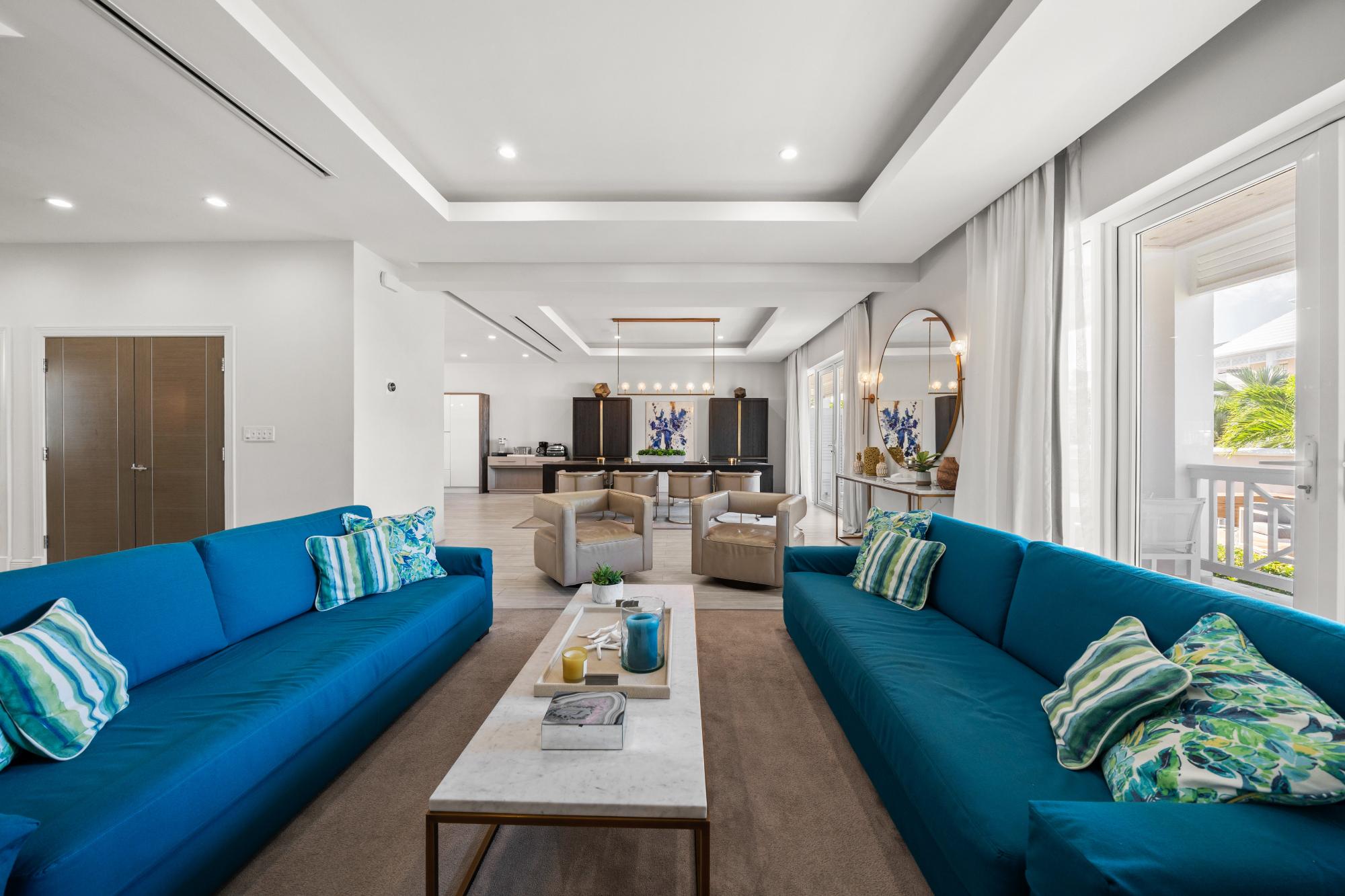 Discover refined island living in this exceptional double-unit townhome located within the exclusive gated community of Palm Cay, Nassau. Offering five bedrooms, four full bathrooms, and two powder rooms, this beautifully appointed residence is sold turnkey and fully furnished for effortless ownership. The open-concept living, dining, and kitchen area features porcelain tile flooring, recessed lighting, and high-end finishes throughout. A chef’s kitchen with solid wood cabinetry, a large island with seating for four, built-in coffee maker, double ovens, microwave, and wine storage flows seamlessly into the spacious living area and out to an inviting covered patio. Upstairs, the luxurious primary suite includes a large soaking tub, separate shower, double sinks, and dual rain showerheads, while the third-floor lounge with a bar, balconies, powder room, and pool table provides an ideal entertainment space. Outdoor living is maximised with a double garden, oversized patio, and garden deck for relaxing or entertaining. Just steps from one of New Providence’s most beautiful beaches.
