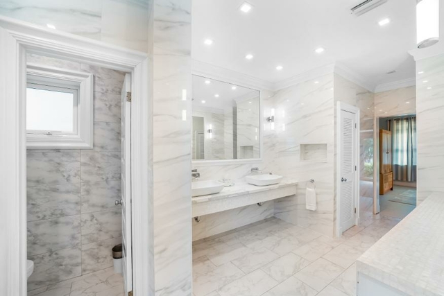 This stunning 4-bedroom, 4.5-bathroom canal-front estate in Fortune Bay estate delivers the perfect balance of modern luxury, comfort, and island charm — ideal for boaters, families, and those seeking a refined canal-front lifestyle on Grand Bahama island. It offers exceptional craftsmanship, functional elegance, and an open-concept layout perfect for entertaining and relaxation. Enjoy multiple living and dining areas overlooking the canal. Interior boasts 10-foot double crown-molded ceilings, fully furnished chef’s kitchen featuring dual cooktops (gas and electric), double ovens, and quartz countertops. Grand Primary suite with most luxurious en-suite bathroom is downstairs. Upstairs: additional living area with office space and 3 generous guest suites, each with its own en-suite bath. Outdoors enjoy a fully equipped outdoor kitchen and dining space, new heated pool with Baja shelf/spa and patio. Other features: solar water heaters; Impact wind