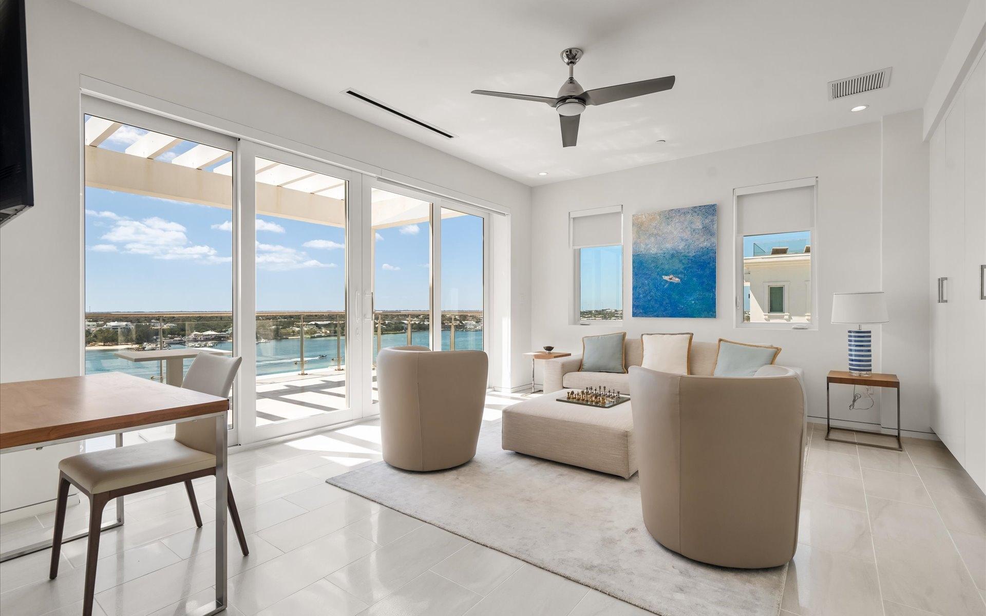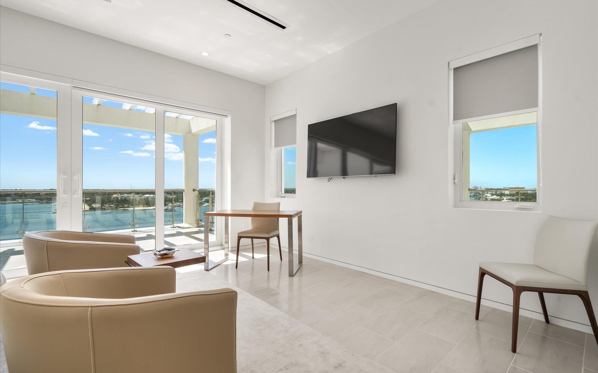 One Ocean boasts a prime location on Nassau Harbour, nestled between Ocean Club Estates and Four Seasons Ocean Club. As the tallest residential building on Paradise Island, it features 79 elevated apartments, each with private elevator access, underground parking, 24-hour security, an elegant lobby, and a private swimming pool and gym. This fully furnished penthouse offers breathtaking views over the harbor, complemented by expansive outdoor living spaces that showcase panoramic ocean vistas. Various restaurants, shopping, nightlife, and beautiful beaches are just a short stroll away. The penthouse encompasses 4 bedrooms and 4.5 bathrooms spread across two levels with high-end finishes. Highlights include 8-foot high solid wood interior doors made in Germany, luxurious European kitchens with Wolf, Bosch, and Sub-Zero appliances, imported porcelain tiles throughout all interior spaces and exterior balconies, hurricane impact-resistant doors and windows, and exterior railings crafted from marine-grade powder-coated aluminum.