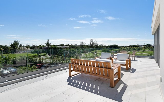 Only minutes from the airport and Baha Mar Resort Casino and Water Park, Goldwynn is contemporary Island living beyond expectation, designed to cater to your every need. A boutique setting with separate Condo/Hotel and Luxury Residences provides the perfect sanctuary for solace and privacy amidst the sophisticated amenities of Cable Beach. At over 2,795 total sq. ft., this spacious, fully custom-furnished corner unit on the Residential side offers 2 king ensuite bedrooms, 2 full bathrooms with Grohe fixtures, rainforest shower heads, and Toto toilets, a full kitchen equipped with Miele & Liebherr appliances, white lacquer cabinets, and Silestone counter tops in a spacious living and dining area. The unit sleeps 6 with an extra queen murphy console bed, a laundry room, and 3 private balconies, plus an additional 1,100 sq. ft. of outdoor entertaining space with custom teak furnishings. Stunning natural light and breathtaking views of both the ocean and the golf course make this unit perfectly situated to catch the eastern breezes.