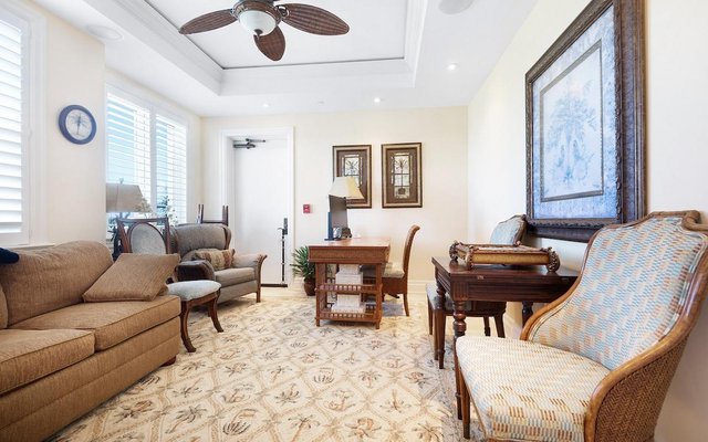 Waterfront Condo with Breathtaking Marina, Harbour, and Golf Course Views This elegant fourth-floor residence offers sun-filled, open-concept living with sweeping views of the marina and Nassau Harbour. The spacious living and dining area features beautiful limestone flooring and opens onto a covered terrace—perfect for relaxing or entertaining. The gourmet eat-in kitchen boasts a center island, granite countertops, and high-end appliances. The primary suite includes a luxurious en-suite bathroom with a custom vanity, granite counters, a jetted tub, and a generous walk-in closet. Two additional guest suites each offer private en-suite bathrooms, and there is an extra room—currently used as a den—that can easily be converted into a fourth bedroom or office. Residents have access to premier on-site amenities, including a private marina, pools, a fitness center, a concierge, and secure underground parking with 24-hour security. Ownership includes membership to a private beach club, golf course, and access to amenities at Atlantis Resort and The Ocean Club, a Four Seasons Resort.