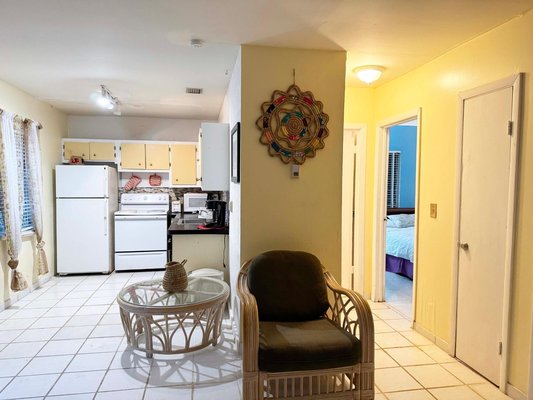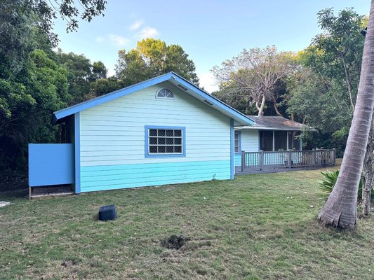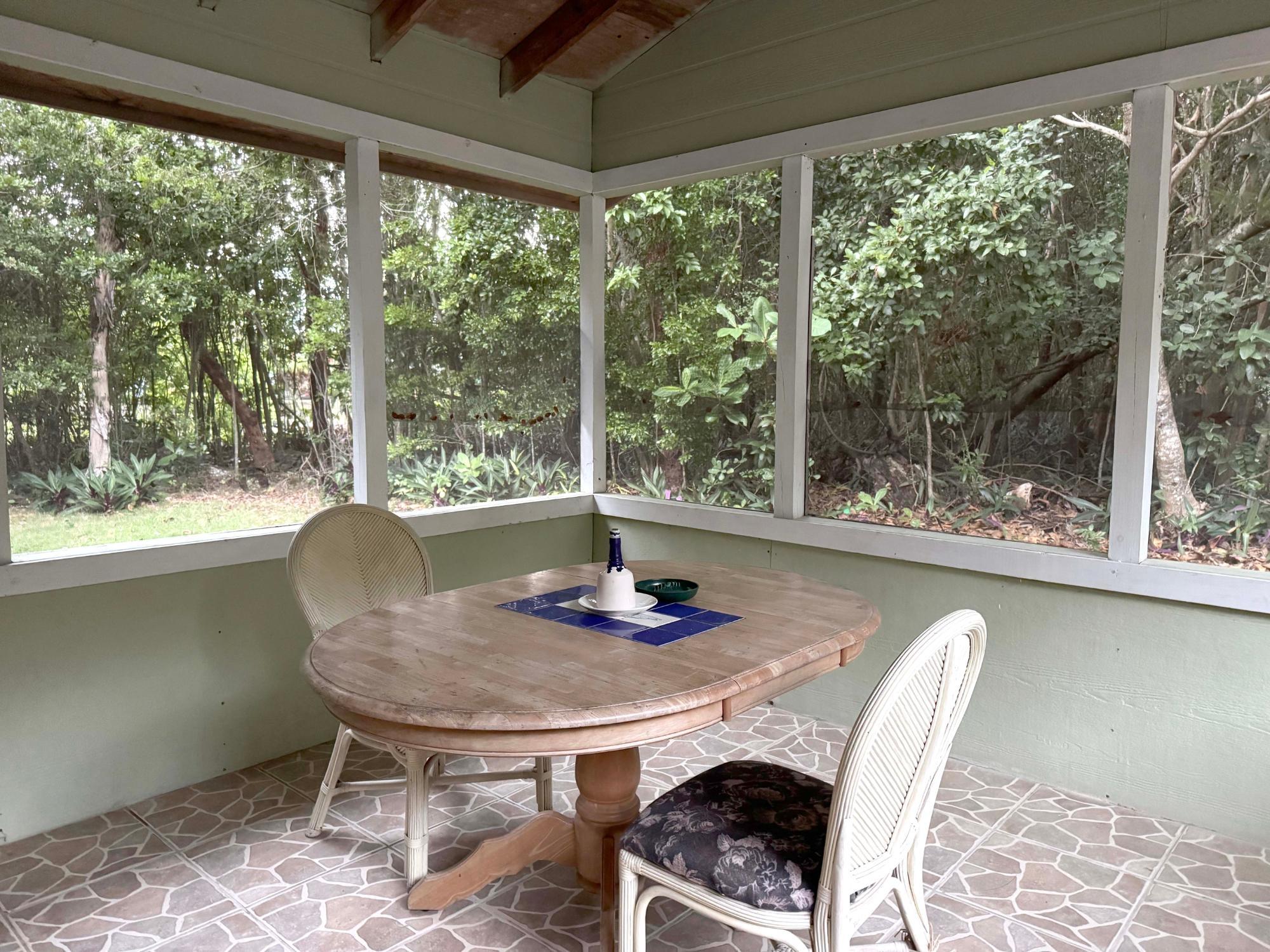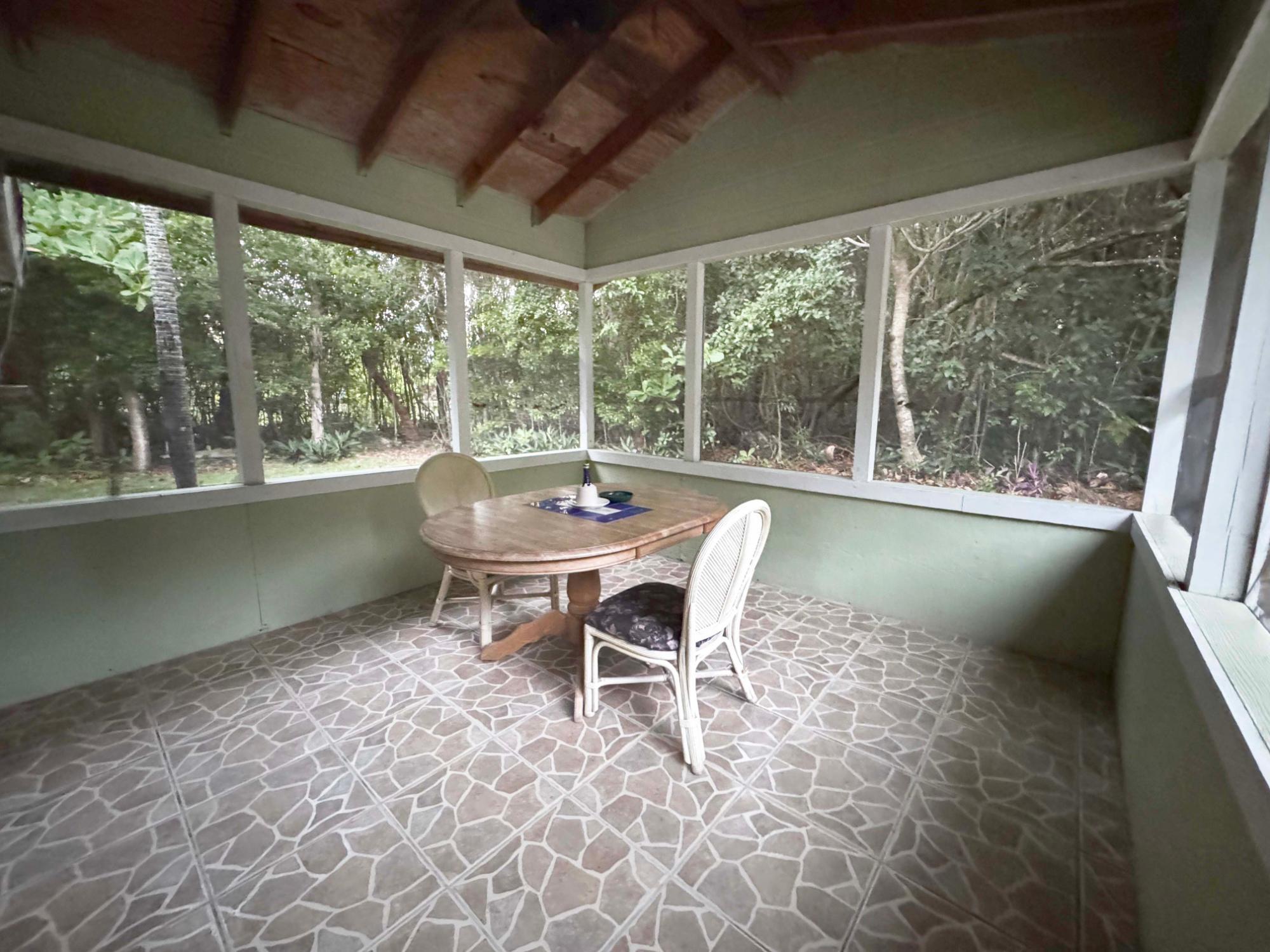 Fully furnished 2-bedroom, 1-bath villa with a warm, inviting island feel just a short walk from the beach. This Andros cottage features wood-paneled accents, tile flooring throughout, split A/C units, and an open living and dining layout designed for comfort and ease. The screened-in patio expands the usable living space and is perfect for outdoor dining or relaxing in the natural surroundings. Positioned on a private, tree-lined lot, the home offers excellent short-term rental potential and is fully move-in or rental-ready. A charming island retreat with consistent appeal for vacationers and long-term guests alike.