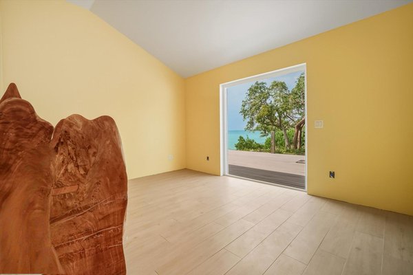 Set on a quiet dead-end street on picturesque Russell Island, this private oceanfront retreat offers approximately 200 feet of elevated waterfront frontage on a one-acre parcel, showcasing crystal-clear turquoise water views and unforgettable sunsets. The 3-bedroom, 2-bath residence spans approximately 2,000 sq. ft. and is approximately 80% complete, allowing a new owner to customize final finishes. An open-concept layout is filled with natural light and framed by large windows capturing sweeping ocean views. Lush mature gardens surround the home, with walking paths throughout the property to enjoy the natural foliage, birds, and serene island setting. A wraparound deck extends living spaces outdoors, ideal for relaxing and entertaining. Additional features include impact windows and doors, a storage shed, and ample room for expansion. The property offers space for an infinity-edge pool, potential for guest cottages, and a private path to the water leading to the home’s own secluded beach cove.