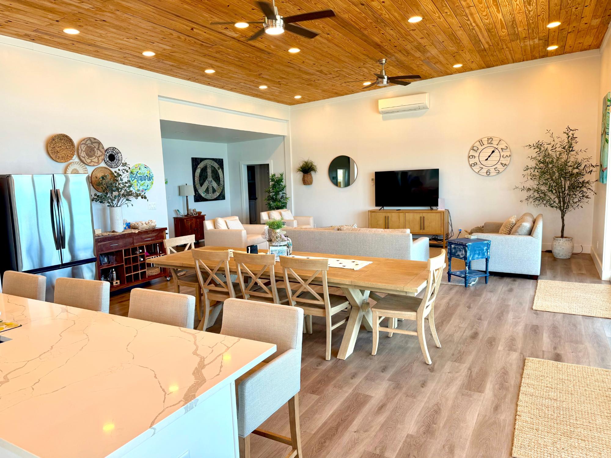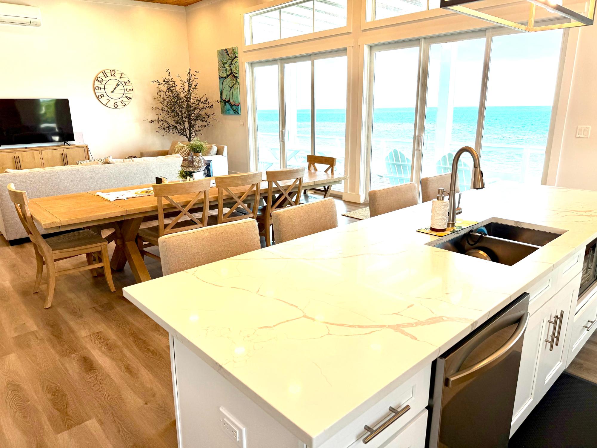 Amani speaks true to is positive connotation of Peace and Tranquility. Located on the south end of Great Guana Cay, this stunning oceanfront home is exquisitely appointed with three bedrooms and three and a half bathrooms. As soon as you enter the home, the open concept leads you through a modern island style kitchen, and the dining and flows right into the living room, making for the ultimate gathering spot for all of your friends and family. You can choose 360 degrees of porches. When you are situated on the main porch on the ocean side, you’re in continuous gaze of the stunning Atlantic ocean and its many hues of BLUE with relaxing sounds of the light crash of waves on the shore line. Enjoy a dip just off of the back yard and take in Guana’s beautiful tropical reef system. Designed for both privacy and comfort, Amani is enveloped in lush tropical landscaping while only a 10 minute ride to all of Guana’s attractions, for the best of both worlds. The house is equipped with an Automatic Standby generator for redundancy and your full enjoyment of the property at all times.