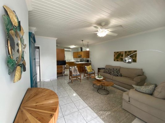 This 2 bed 2 bath fully furnished apartment is situated in a quiet, gated community, and centrally located. Enjoy the mature trees and the shaded outdoor sitting area, perfect for BBQ’ing. The inside is pet friendly with tile floors throughout. Enjoy the open concept and many new upgrades, including new white countertops, new stackable washer/drier and a standby generator on site, capable of running all appliances and air conditioners. The apartment comes with 3 full sized parking spaces. Tenants are responsible for paying the electricity and BTC internet/phone bill, all other amenities are included.