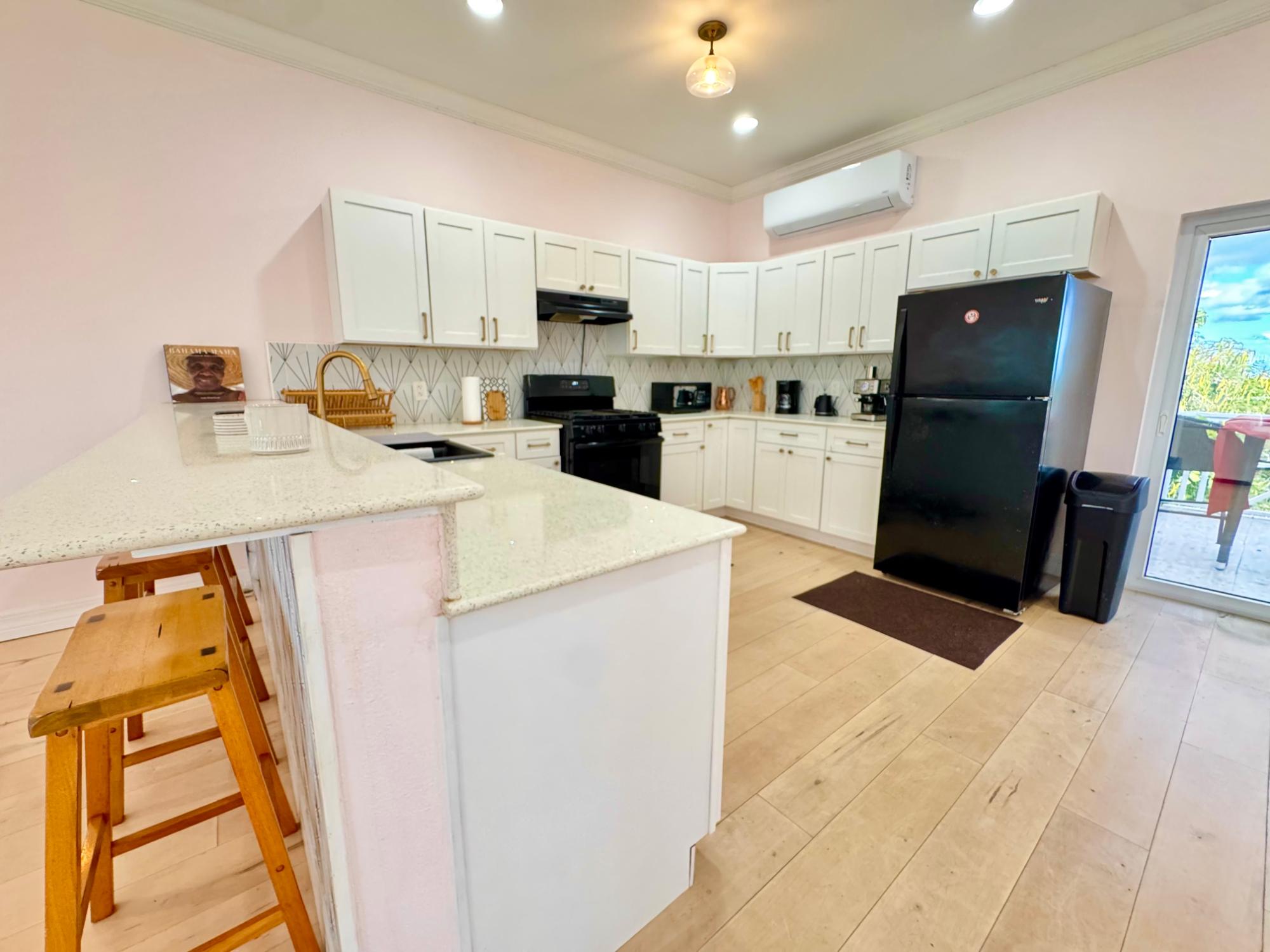 Enjoy elevated views of Western New Providence from this spacious 3-bedroom, 2-bathroom home ideally located near Old Fort Bay. This beautifully designed residence features an enclosed private yard with a pergola, outdoor lounge area, and lush green landscaping—perfect for relaxing or entertaining. Inside, the home offers a bright, open-concept loft-style kitchen and living room with large windows that fill the space with natural light. Additional features include: All utilities included, Secure automatic gate, Hurricane-impact windows and doors, Washer & dryer, Pet-friendly environment, Generous indoor and outdoor living spaces. The property is conveniently located close to grocery stores, international schools, financial centers, shopping plazas, and restaurants, and is less than a 10-minute drive to the Lynden Pindling International Airport. 6–12 month leases available.