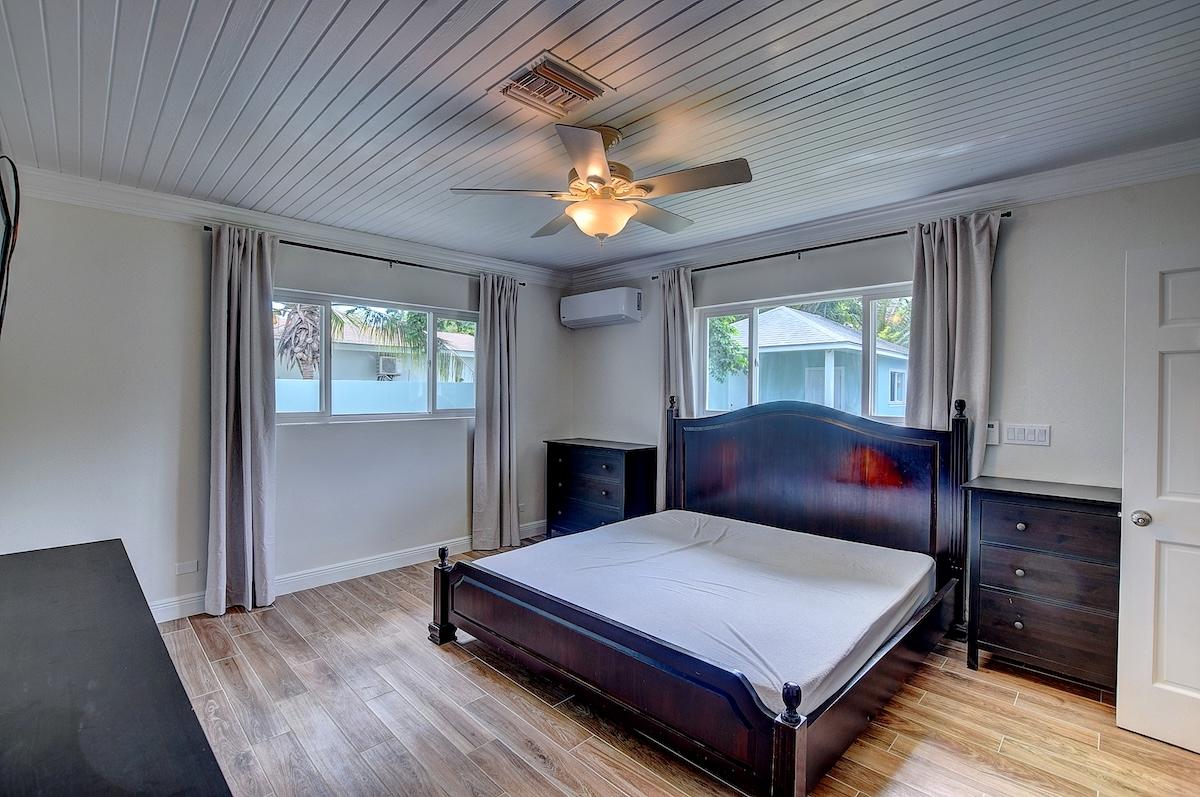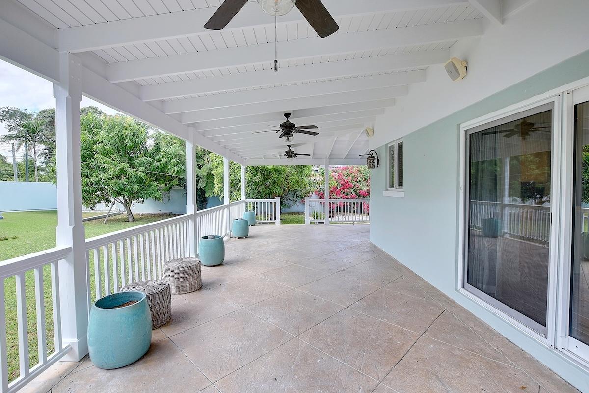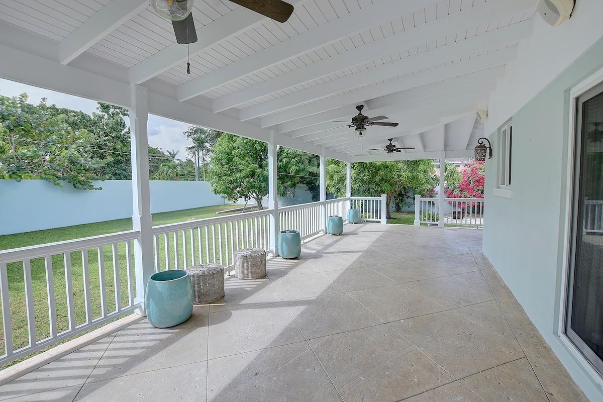 Discover refined island living in this beautifully appointed turn key residence located in the sought-after Blair Estates community of Nassau. This spacious 3-bedroom, 3-bath home features an open living and dining plan that seamlessly blends comfort and style. A dedicated study offers the perfect space for a home office or library. Step outside to enjoy a covered patio overlooking a lush, well-landscaped private yard—ideal for entertaining or quiet relaxation. The property also includes a charming 1-bedroom guest cottage, perfect for visitors or extended family. With a secure walled perimeter, manicured grounds, and a convenient 1-car garage, this home combines elegance with practicality in one of Nassau’s most desirable neighborhoods.