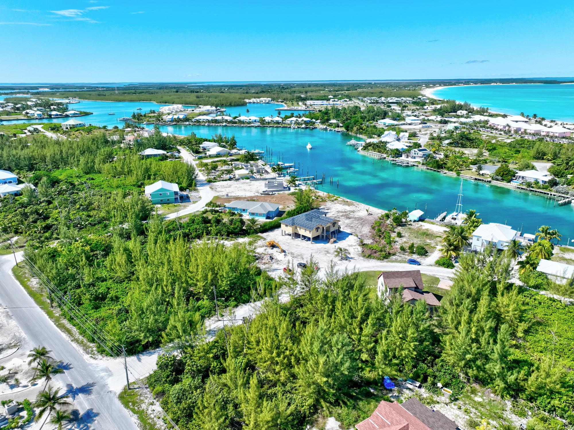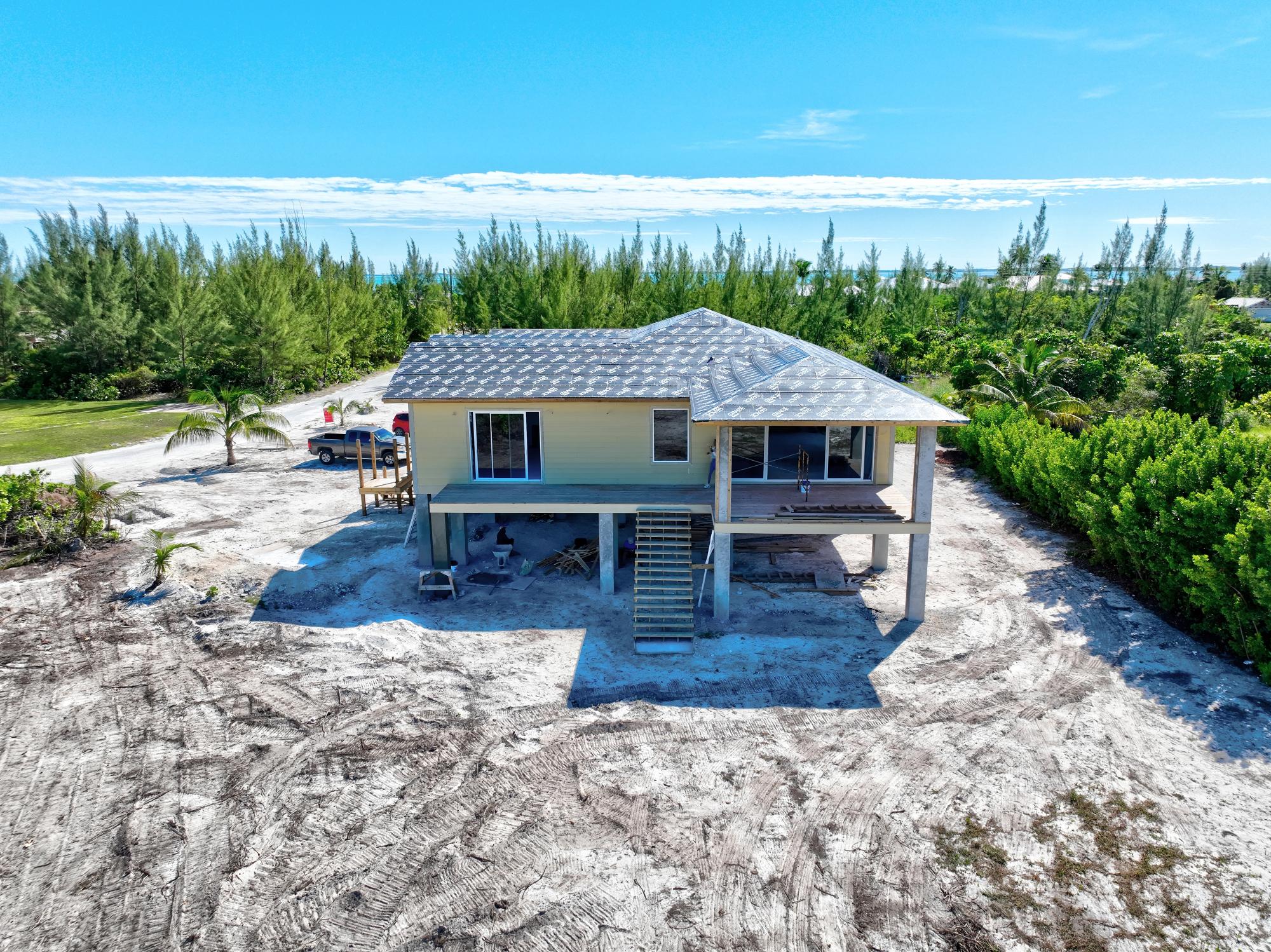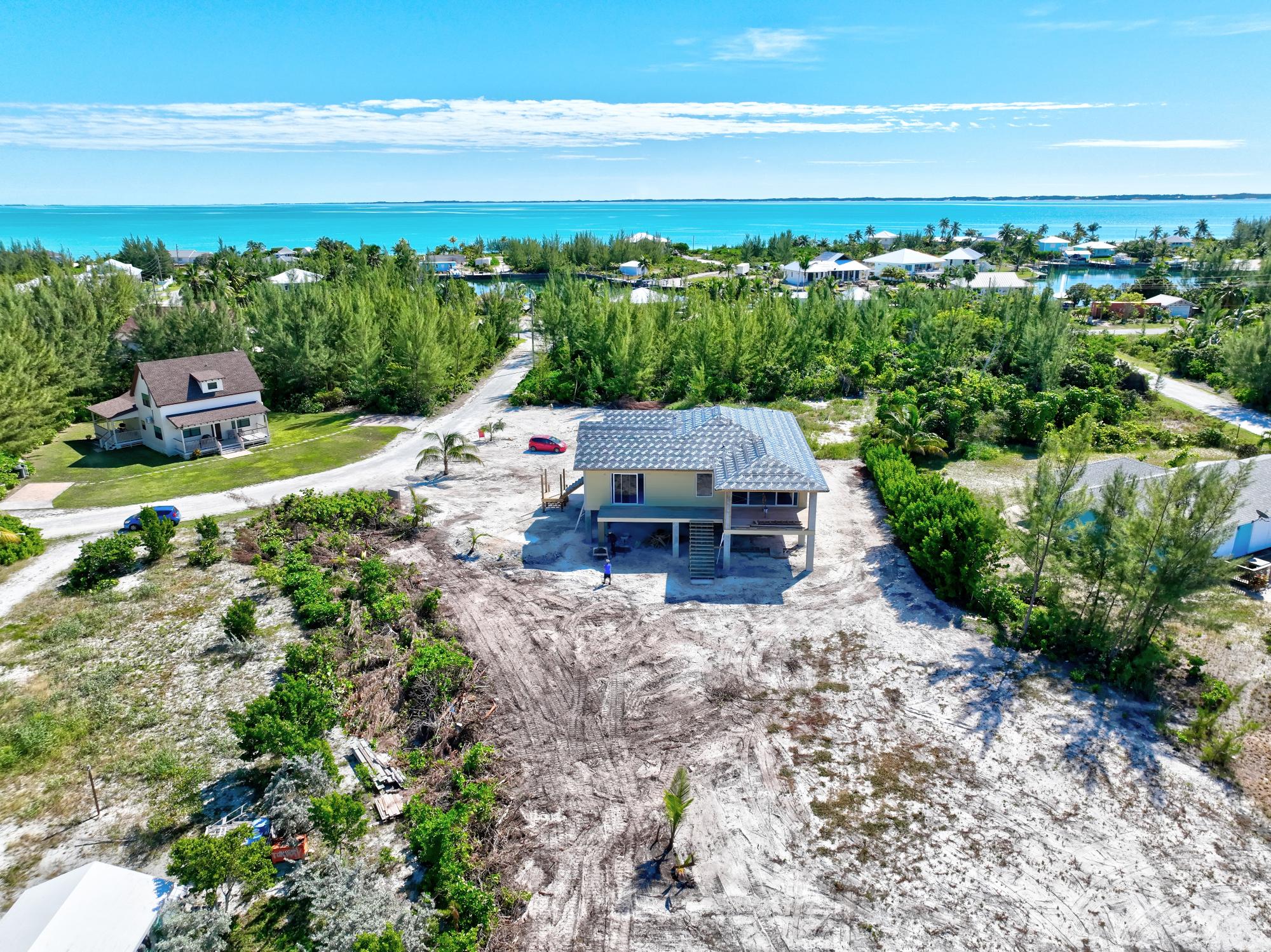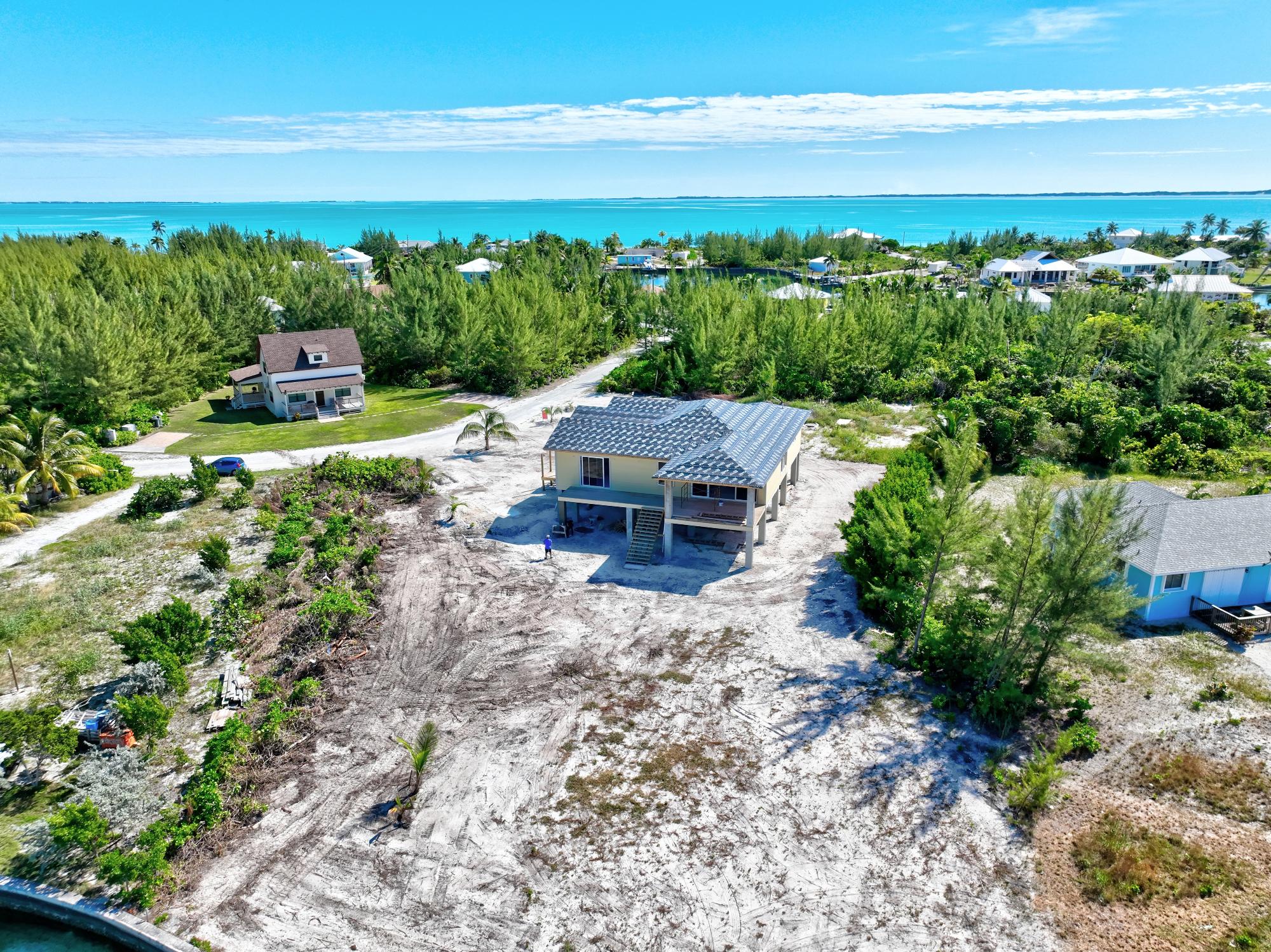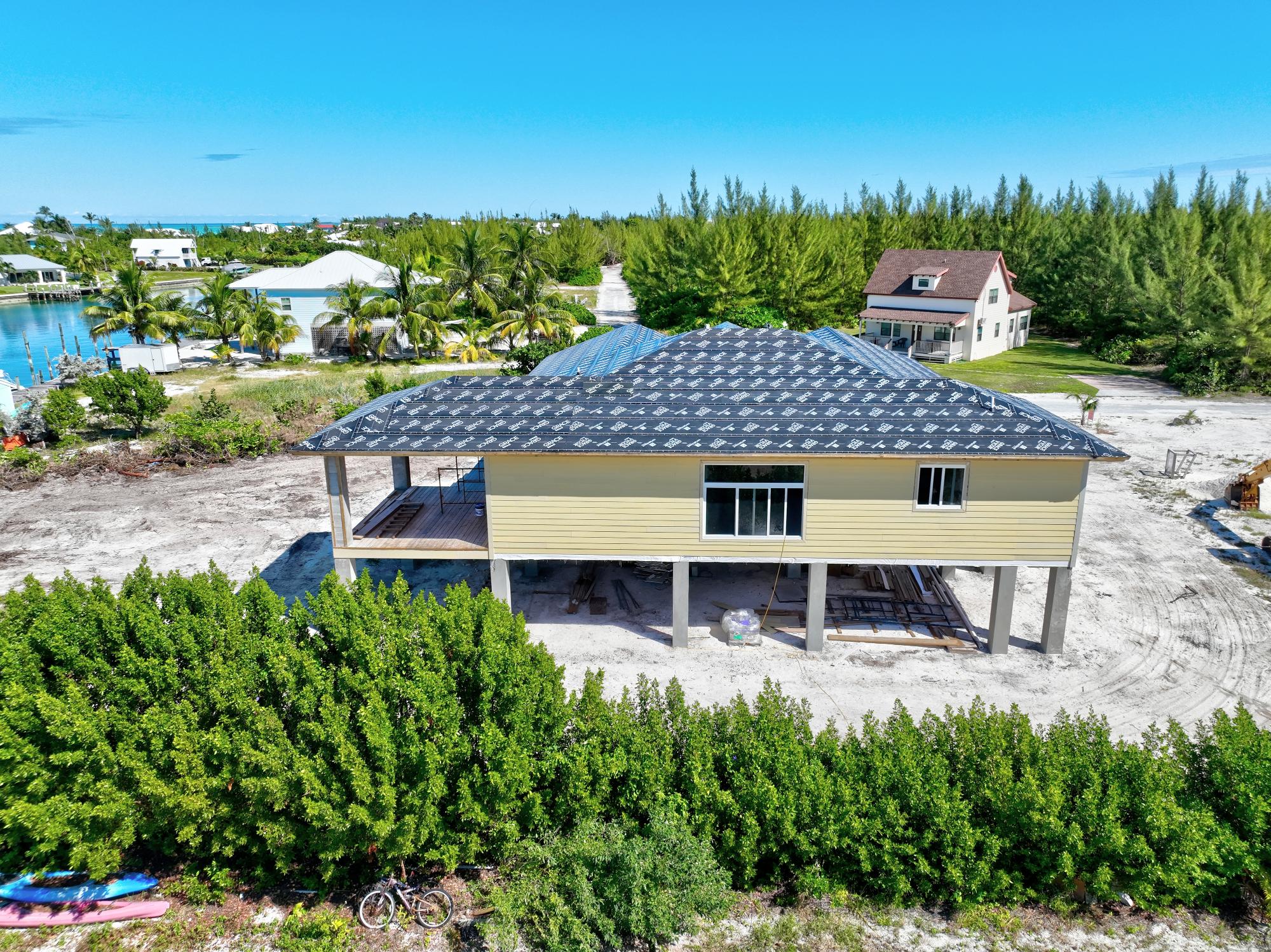 Peaceful Harbour – Brand New Construction Designer Home, Completion January 2026 This stunning new two-story coastal residence by designer Tara Diane Sawyer is thoughtfully crafted to capture the essence of modern island living. This spacious 3-bedroom, 3.5-bath custom home is located in Galleon Bay in beautiful Treasure Cay, offering unobstructed canal and harbour views. The main living spaces are elevated on the second floor, creating beautiful panoramic views, cool breezes throughout the home, along with a massive amount of covered storage on the ground floor next to the garage. The open floor plan features high vaulted ceilings, a custom chef’s kitchen with custom cabinetry to create a seamless indoor-outdoor living experience onto the large covered patio overlooking the harbour. The expansive patio and deck can be accessed from both the great room and the master suite. Each bedroom includes its own private en-suite, providing comfort and privacy for family or guests.