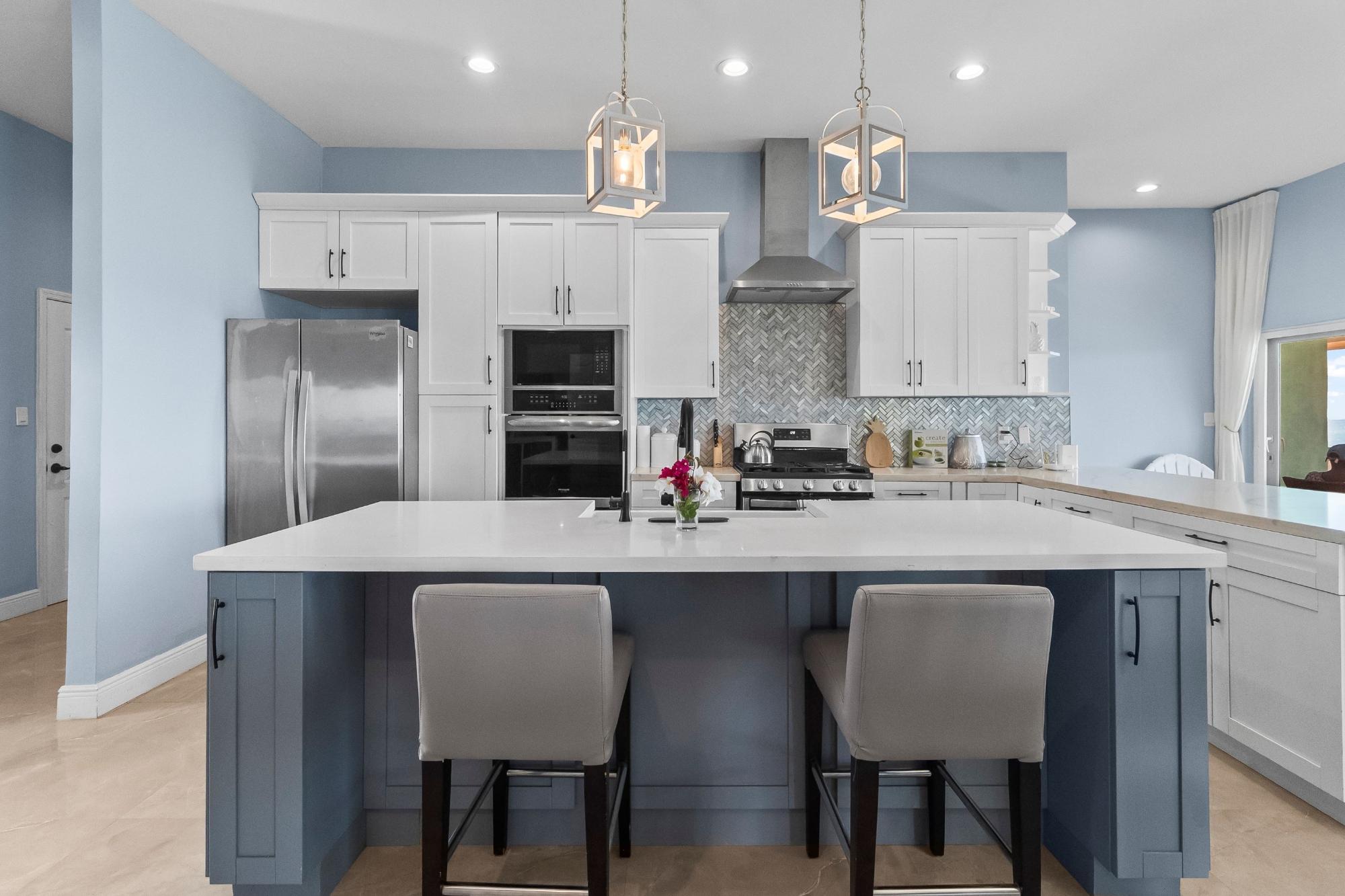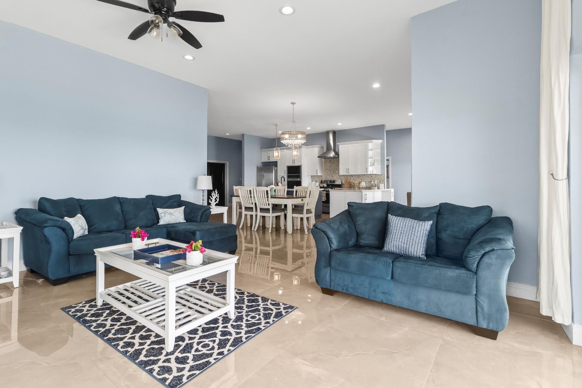 With incredible views over the turquoise and indigo Bahamian waters, this recently constructed concrete home on the calm Caribbean side of the island offers the stunning natural beauty and tranquility of island living, complemented by modern conveniences and comforts. Airy and spacious, with high ceilings and beautiful, carefully curated fixtures and fittings throughout, The Blue House features 3 bedrooms and 3.5 bathrooms, designed to reflect the vibe of the tropical waters and vegetation that surround it.