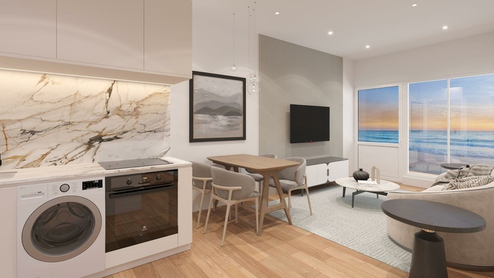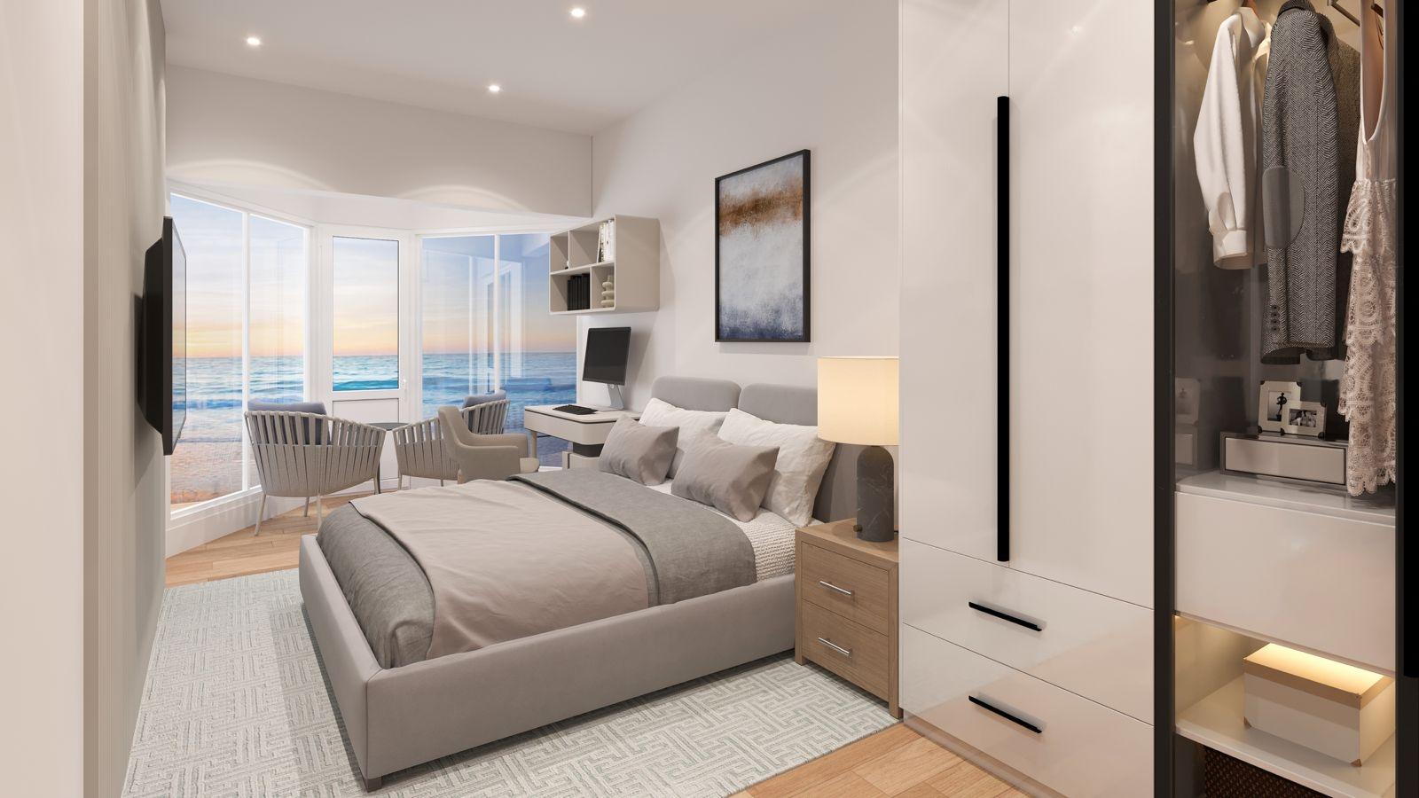 Enjoy awesome ocean views of both sides of the island from your balcony, bay window, or sky lounge at Ocean View Studios And Suites” – Located in the heart of Hooper’s Bay Resort district. An 8-minute walk to Hooper’s Bay Beach. Food and liquor stores, a new marina, boutique hotels with restaurants and shops within walking distance. Complimentary shuttle to Hooper’s Bay beach and Village. 15 minutes from the airport/9 minutes to George Town by taxi. Hands-off investment opportunity. $350-$450 daily vacation rental ROI. The Exumas’ present housing crisis all but guarantees the highest possible potential for exceptional, immediate ROI. Our rental pool portfolio allows you to profit as an owner with none of the hassles of management, staffing, or maintenance. Save 70% off utility bills! Estimated Completion: 3Q-2026 , HOA: $2.50 per sq. ft.
