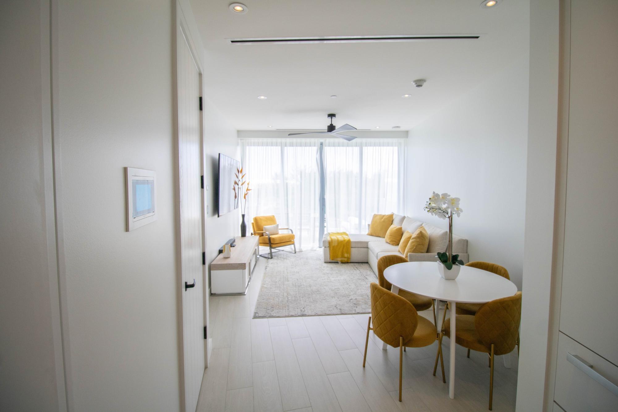 This beautiful 2-bedroom condo is located on the third floor of the residential side of the spectacular GoldWynn condo-hotel. Featuring a thoughtfully designed interior and offering stunning views of the turquoise waters, this newly constructed residence perfectly blends luxury and comfort. The open-concept living area and spacious master suite seamlessly transition onto a gorgeous 318 sq. ft. balcony ideal for relaxing or entertaining with ocean breezes. GoldWynn is an exclusive beachfront residence offering world-class amenities, including a beachfront infinity pool, theatre, underground parking, fitness and spa facilities, conference centre, rooftop pool, and more. Conveniently situated near the Baha Mar Resort and Casino, GoldWynn owners enjoy the best of both worlds—peaceful residential living with access to the vibrant entertainment and amenities of Baha Mar.