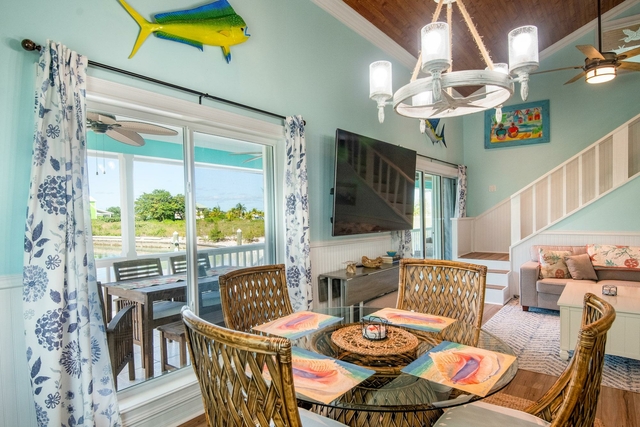 Sunset Paradise is an immaculate 4-bedroom, 4-bathroom island-style home located at the end of a peaceful private canal in Treasure Cay. Built in 2015 and fully refurbished in 2022, this beautifully furnished residence combines classic Bahamian charm with modern comfort. The open concept living, dining, and kitchen areas feature vaulted ceilings and westerly views across the calm canal, offering some of the most stunning sunsets in the Abacos. Outdoor living includes a spacious covered porch, an expansive patio, and a 20,829 sq. ft. landscaped yard enclosed by a wood picket fence. Boaters will enjoy a 41-foot private dock, while a detached storage shed, 18KW backup generator, and dual driveways add convenience. Just a short golf cart ride from Windward Beach and the world-famous Treasure Cay crescent beach, Sunset Paradise offers a perfect blend of tranquility, accessibility, and relaxed island luxury.