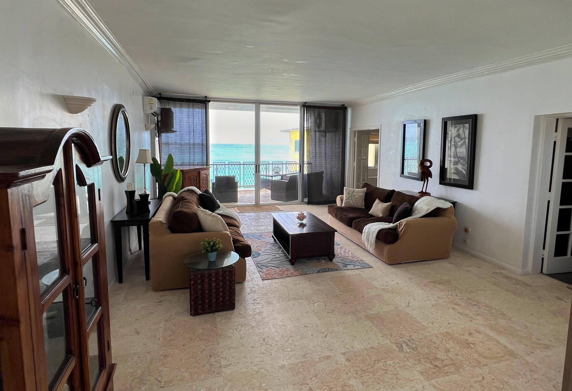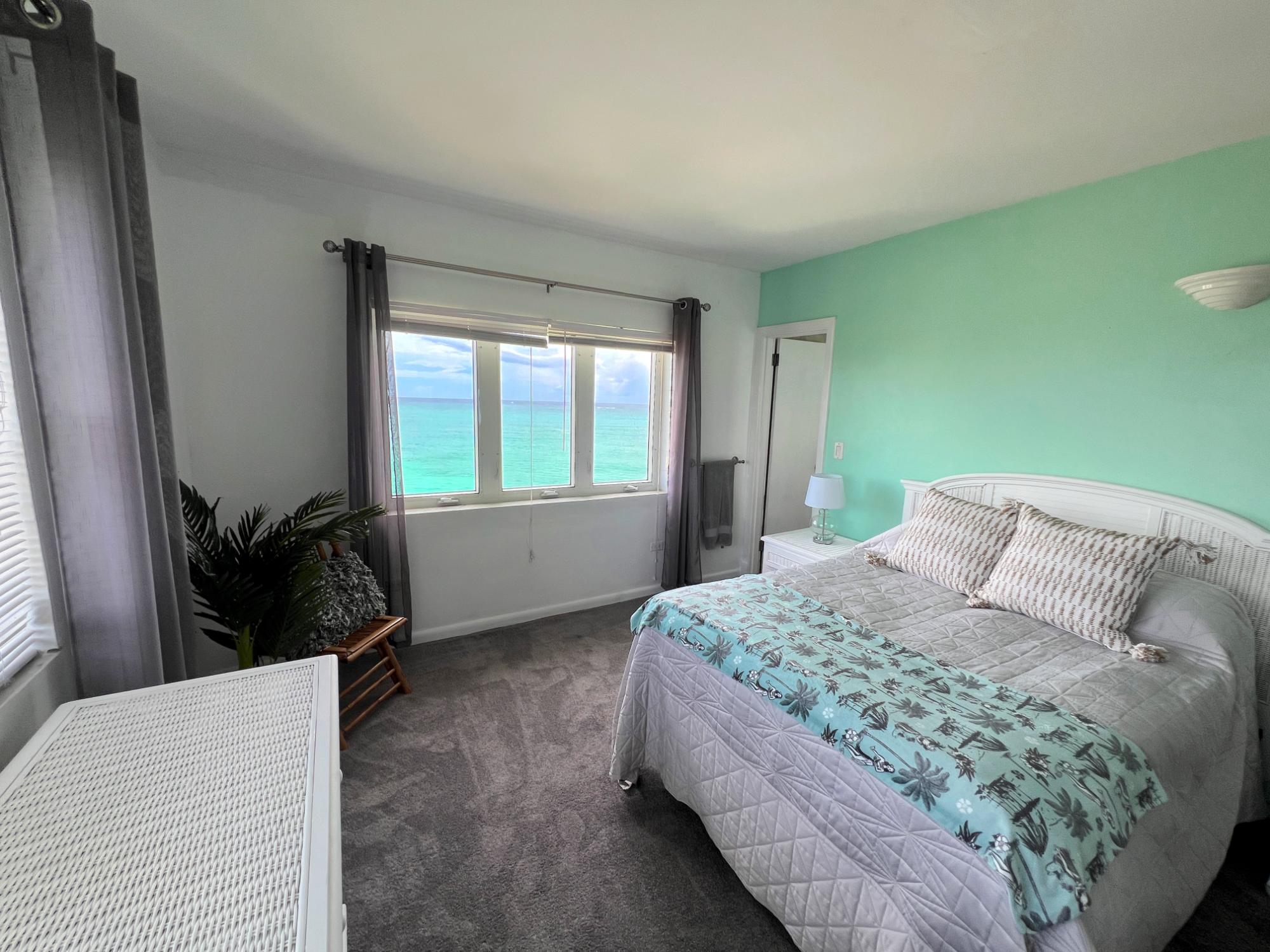 This 3-bedroom, 3.5-bathroom condo is located on the 5th floor of a beachfront building in the heart of Cable Beach. Fully furnished, it offers ocean views from every room, including the bedrooms, living, and dining areas. The unit has high ceilings and a spacious layout with plenty of natural light. There is ample storage throughout, along with a convenient work space off the living room that also overlooks the ocean. The building features elevator access, a large pool with direct beach access, one designated parking spot, and guest parking. A backup generator ensures peace of mind. Conveniently situated close to resorts, shopping, and dining, this condo provides comfortable beachfront living in a great location.