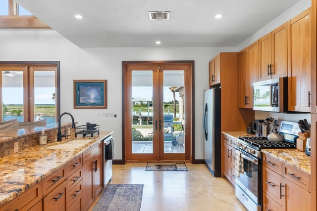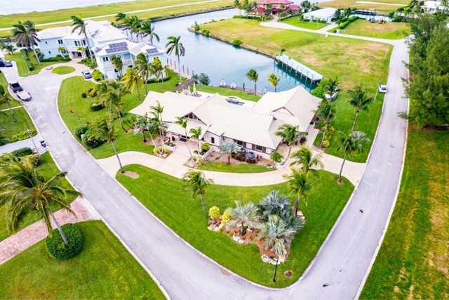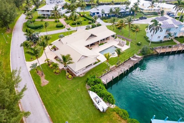 This home is situated in the idyllic gated community of Old Bahama Bay in West End on Grand Bahama Island only 56 miles from West Palm Beach, Florida. The property is wonderfully landscaped with house measured at 3,200 square feet and 1800 sq ft of a covered porch. Every room has a water view. Travertine marble floors, cypress beam high ceiling, and natural stained wood exemplify the quality and aesthetic features of this magnificent home. The guest quarters have 3 bedrooms, 2 bathrooms with a kitchenette. The Main house has a master bedroom with whirlpool tub and a second bedroom. The 75 ft dock has deep water and 50 amp service. You can be in world class fishing and diving within minutes. This house is a fisherman’s dream and the price has been reduced for a quick sale.