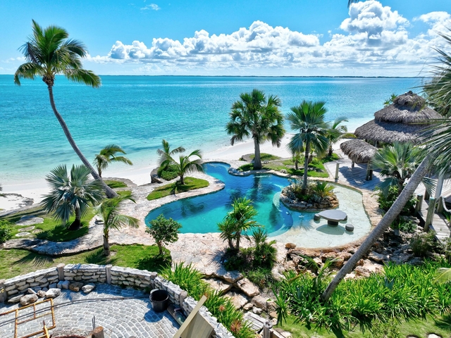 Experience barefoot luxury on Windward Beach in Treausre Cay, Abaco. This exceptional 4200 sqft beachfront estate spans two ocenafront lots, fully enclosed with walls and dual gated entrances for privacy. Designed for relaxing effortless island living, the home offers expansive patios with vovered Tiki gazebos for outside lounging and dining all overlooking the turquoise Sea of Abaco. The lush tropical landscape, a masterpiece by world-renowned landscaoe designer Raymond Jungles, features a meandering fish and turtle river, vibrant native plantings and towering palms, and a natural stone infinity pool at the beach edge, blending seamlessly with the Tip of the Sea. This rare property combines timeless Caribbean architecture, resort style outdoor living and exquisite natural beauty to create a one of a kind sanctuary inside one of Abaco’s coveted gated communities.