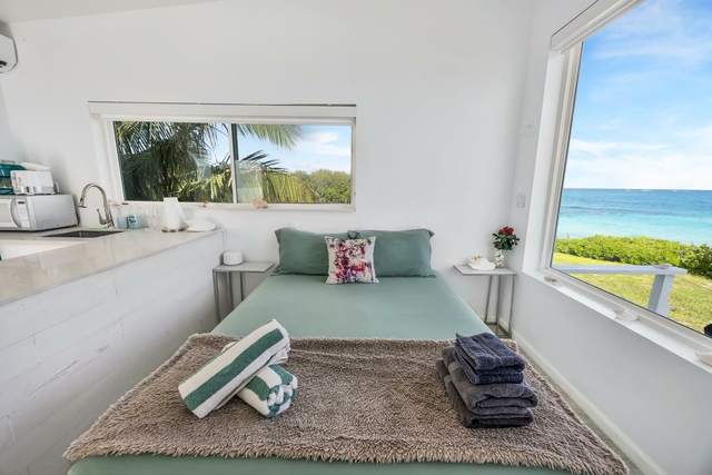 Perfectly placed along the pink sands of Governor’s Harbour, Eleuthera, Mika’s Resort offers a rare chance to own a turnkey oceanfront property that is perfect for personal use and generating income. This exceptional beachfront estate combines privacy, comfort, and natural beauty, ideal for a family retreat, vacation home, or boutique rental business. The property features a spacious 800 sq. ft. oceanview main suite with a full kitchen, living area, and private balcony, perfect for an owner’s residence. In addition, four well-appointed oceanfront studios (approximately 240 sq. ft. each) provide cozy accommodations for guests or short-term rentals. Each studio includes a queen bed, bathroom, kitchenette, and direct beach access. Enjoy thoughtful amenities like a shared oceanfront deck, beachside cabana, high-speed WiFi, Smart TVs, kayaks, snorkeling gear, fishing equipment, and a fully equipped community kitchen, making the property equally suited for family gatherings or rental and event operations.