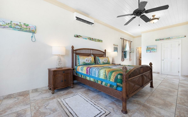 Welcome to Da Villa, an exceptional oceanfront retreat in the sought-after and secluded Breeze Away Estates community. This property offers a well-constructed main residence and guest cottage situated along 100 feet of pink sand beach frontage, providing magnificent views of the Atlantic Ocean. Located in a peaceful residential enclave, Breeze Away Estates offers the tranquility of island living just minutes from Governor’s Harbour – a charming seaside town with boutique hotels, historic homes, luxury vacation rentals, local restaurants, food stores, medical clinics, a ferry port, airport, and artisan shops. Built in 2007, the 2,456 sq. ft. main house offers a bright and airy open plan living space with tongue and groove wood ceilings, and 2 bedrooms and 2.5 bathrooms, designed for comfort, privacy, and effortless indoor-outdoor living. Each ocean facing bedroom occupies its own private wing located on either side of the living area – complete with an en-suite bathroom, a glass door that leads straight on to the patio, and oversized picture windows that showcase stunning ocean views