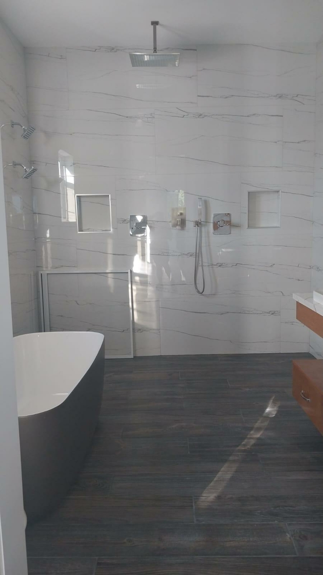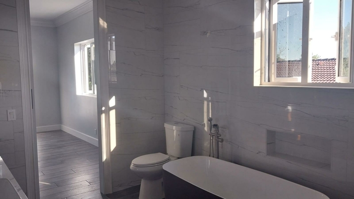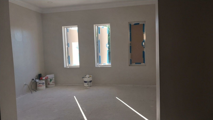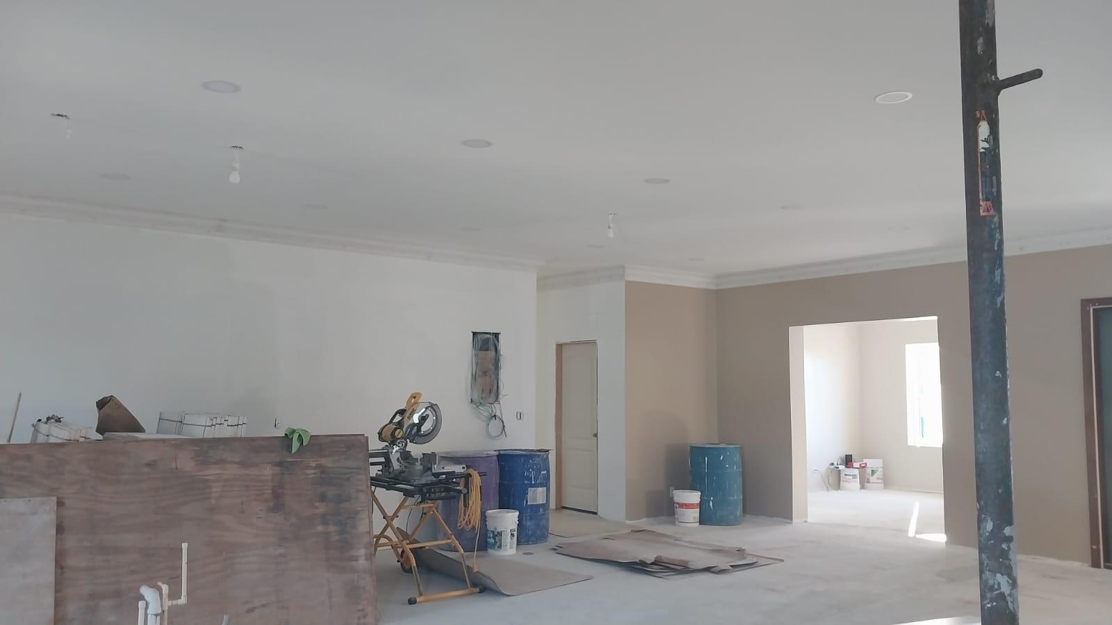 Situated in Bahamia South, this 3-bedroom, 2.5-bath home spans 2,846 sq. ft. and offers a prime opportunity to complete your dream residence with minimal work remaining. It features 10-foot ceilings, 8-inch crown molding and doors, hurricane impact windows, a finished master bedroom with 8×48 wood tiles, and a modern master bathroom with 8×48 porcelain tiles. Additionally, it includes a completed half bath with 2×48 porcelain tiles. The rest of the home is ready for your personal touch, with the essential materials provided such as the porcelain tiles for the rest of the home and metal roofing. Designed for seamless flow and modern living, the open-concept layout enhances the spacious feel of the home. Plus, plans include a spacious 12×30-foot pool which is perfect for relaxing or entertaining.
