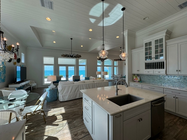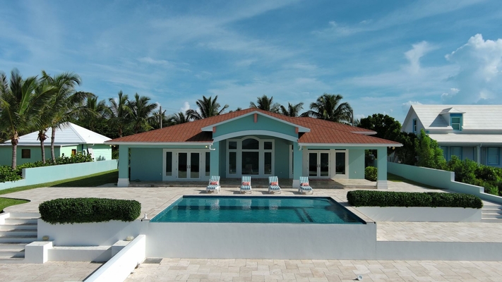 Welcome to Reel Southern, a beautiful oceanfront residence with 95 feet of pristine waterfront boasting panoramic views of the Atlantic Ocean. The location provides a peaceful backdrop for daily living while offering opportunities for outdoor recreation and relaxation. This stunning 4-bedroom, 3-bathroom home is perfectly situated in the highly sought-after Pelican Bay community. The open plan living and dining room opens out onto an outdoor patio overlooking the pool and offering alfresco dining. The modern kitchen combines functionality with style, featuring white cabinetry, stainless steel appliances, quartz countertops and a large breakfast area with a scenic view. This stunning home is a celebration of island luxury, where vibrant and colourful décor brings warmth and personality to every space.