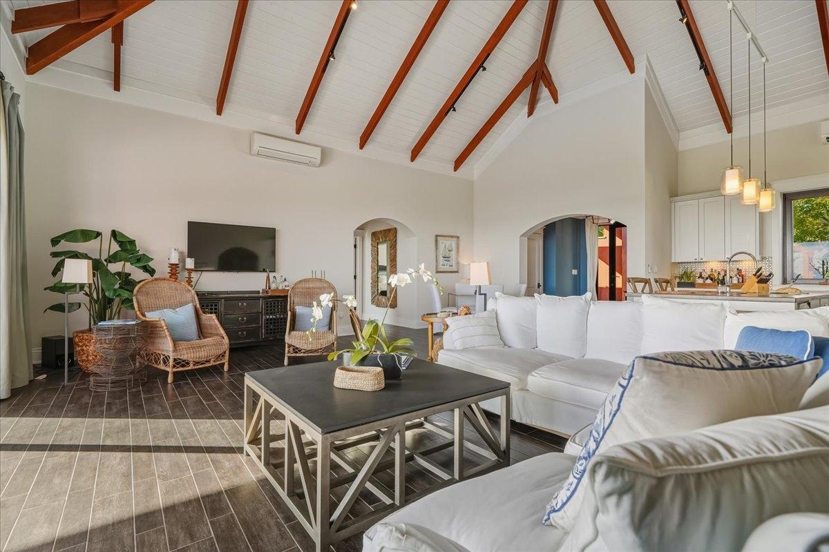 “Blown Away” is a stunning custom-built home within The Reserve at Hooper’s Bay, a private enclave of just ten estate lots minutes from Exuma International Airport. Set on an elevated parcel, the residence enjoys sweeping views of the turquoise harbour and pristine beach below. Spanning approximately 4,500 sq. ft., the main home features three bedrooms, three and a half bathrooms, a spacious open-concept living and kitchen area, dining room, office, and a one-bedroom, one-bath detached guest suite. High ceilings, large windows, and natural finishes create a bright and airy ambiance throughout. The property is beautifully landscaped with native vegetation for low-maintenance tropical living. Professionally furnished and elegantly decorated, Blown Away offers timeless sophistication and the perfect balance of privacy, comfort, and contemporary island elegance. A golf cart is also included in the purchase for convenient access to the beach.