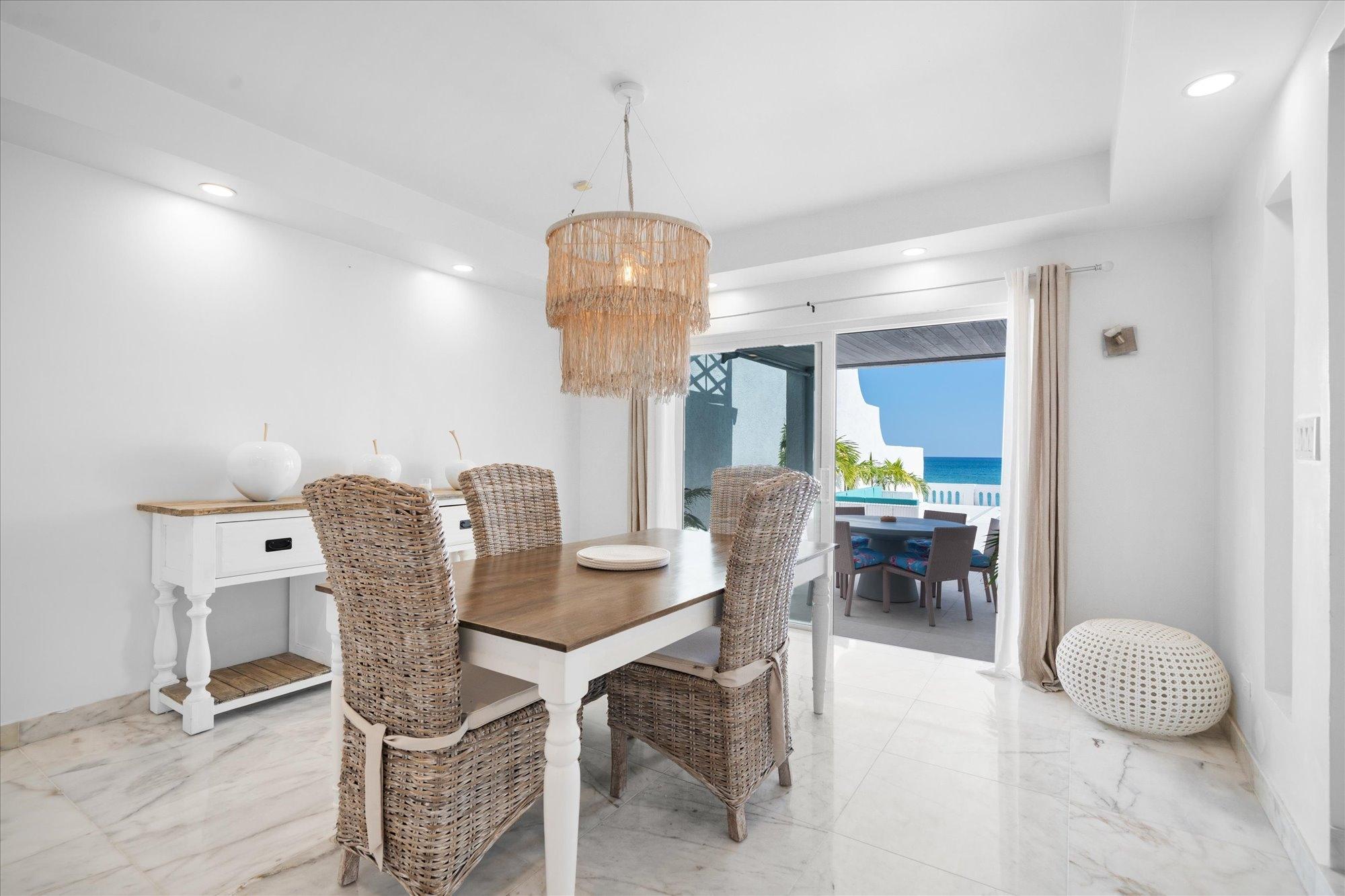 Caprice 9, a remodeled two-story oceanfront villa in Cable Beach’s exclusive gated enclave, offers 2,500 sq. ft. of fully furnished luxury. Perched on an elevated bluff with sweeping sea views, the home features 4 bedrooms, 3.5 bathrooms, a gourmet kitchen, and open-plan living spaces designed to capture the ocean from every angle. Expansive terraces and a sun deck lead to a large private pool, perfect for entertaining. Updated windows, new bathrooms, and a standby generator ensure comfort and style. Steps from Baha Mar and 10 minutes from the airport, this rare villa is available for rent with a minimum one-month lease.