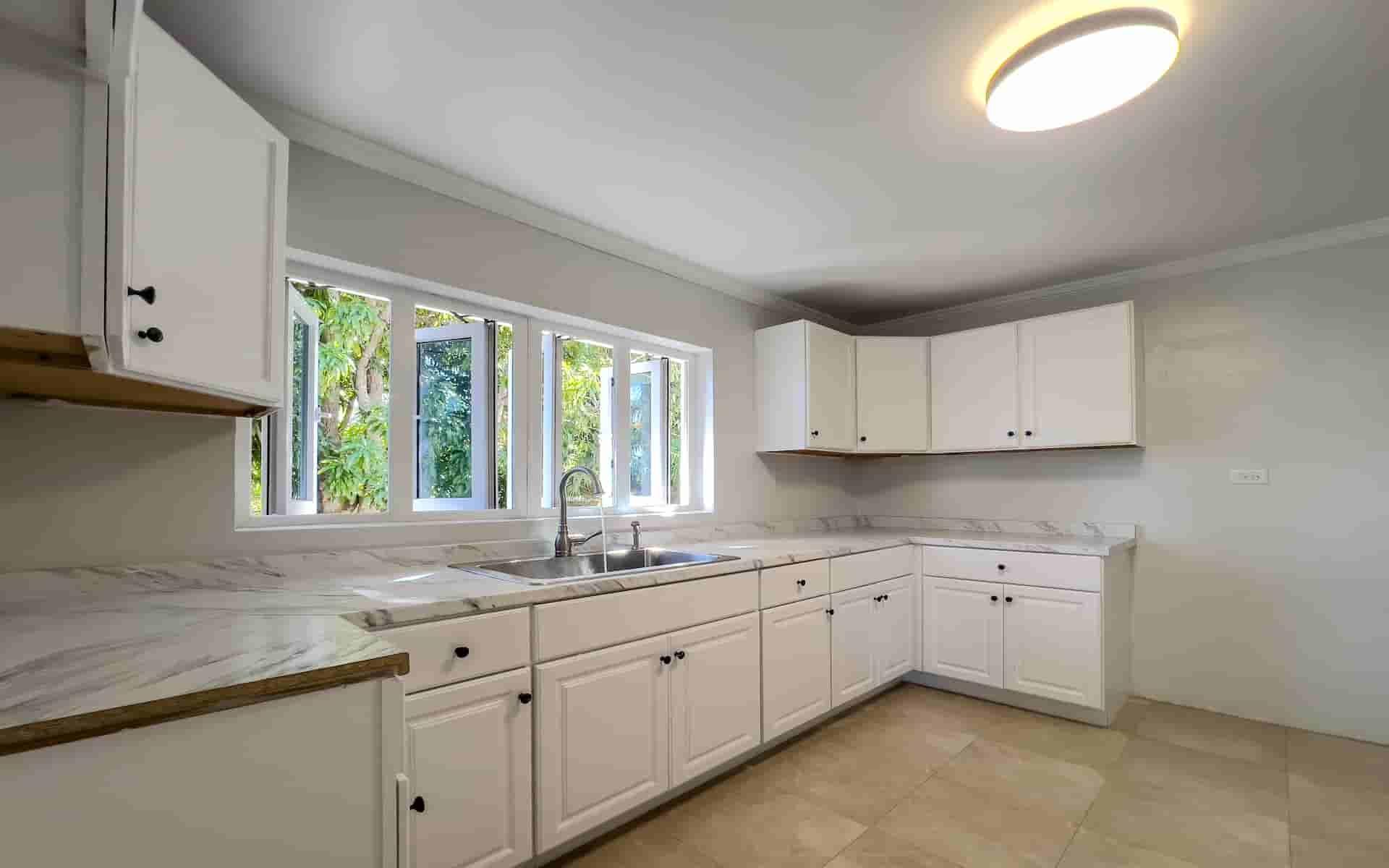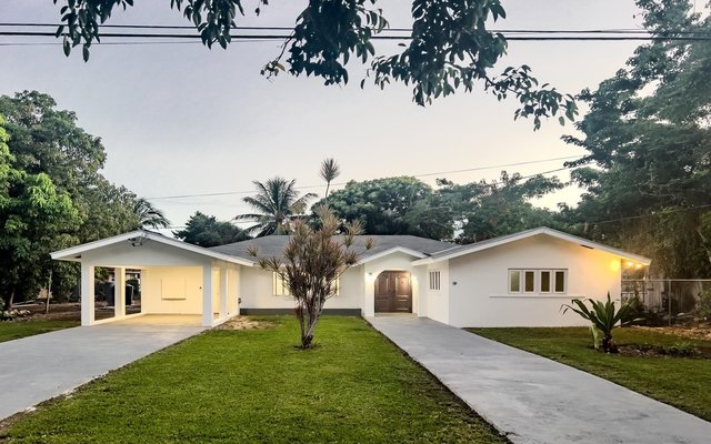 Beautifully renovated 1,500 sq. ft., 3-bedroom, 2-bath home set on a tranquil one-acre lot. The open layout showcases refinished tile floors, smooth plastered ceilings, and sunlit, expansive windows throughout. The house features a brand-new modern kitchen with generous counter space. Ideally located just minutes from the developing Legendary Marina, One East Plaza, Solomons Yamacraw and nearby parks.