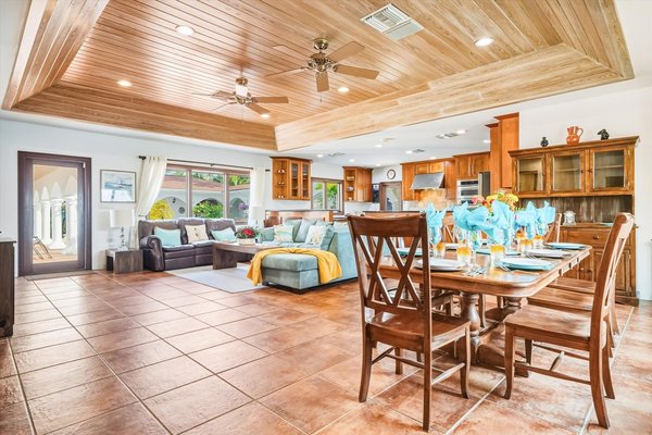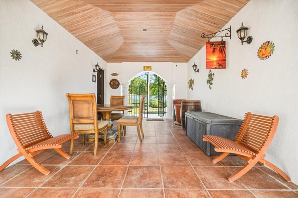 Situated in the quiet neighborhood just off the historic Eastern Road, this fully furnished and meticulously maintained home offers privacy, charm, and exceptional indoor-outdoor living. This 3,235sf residence is centered around a sunny courtyard with an inviting swimming pool and 1,835 sq. ft. of covered patios. An open-concept living, dining and kitchen area features tray wooden ceilings, courtyard views, a central island, granite countertops, SS appliances, a trash compactor, and an RO water system. The home includes a second bedroom with adjacent bath, a primary bedroom with cedar-lined walk-in closet and en-suite bath, and a large adjoining study suitable for conversion to a bedroom. A replica British pub provides a unique entertainment space, while a guest cottage offers its own living room, kitchen, and bathroom. The fully enclosed half-acre property includes automatic gates, hurricane-rated windows and doors, roll-down shutters, central and split A/C, garage, 20KW generator, solar pool heating, alarm system, fruit trees, gardens, sheds, and rainwater collection.