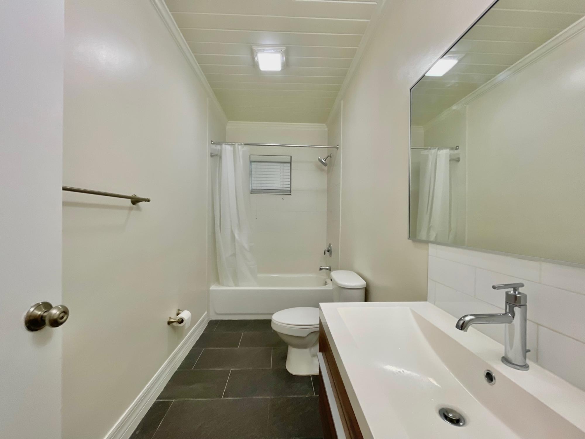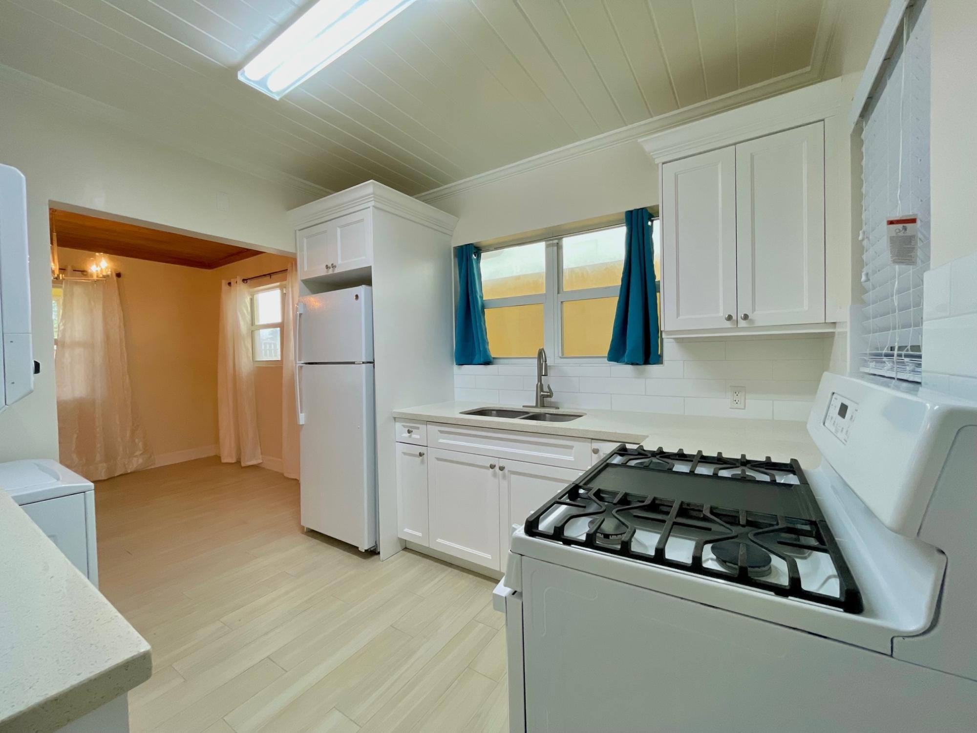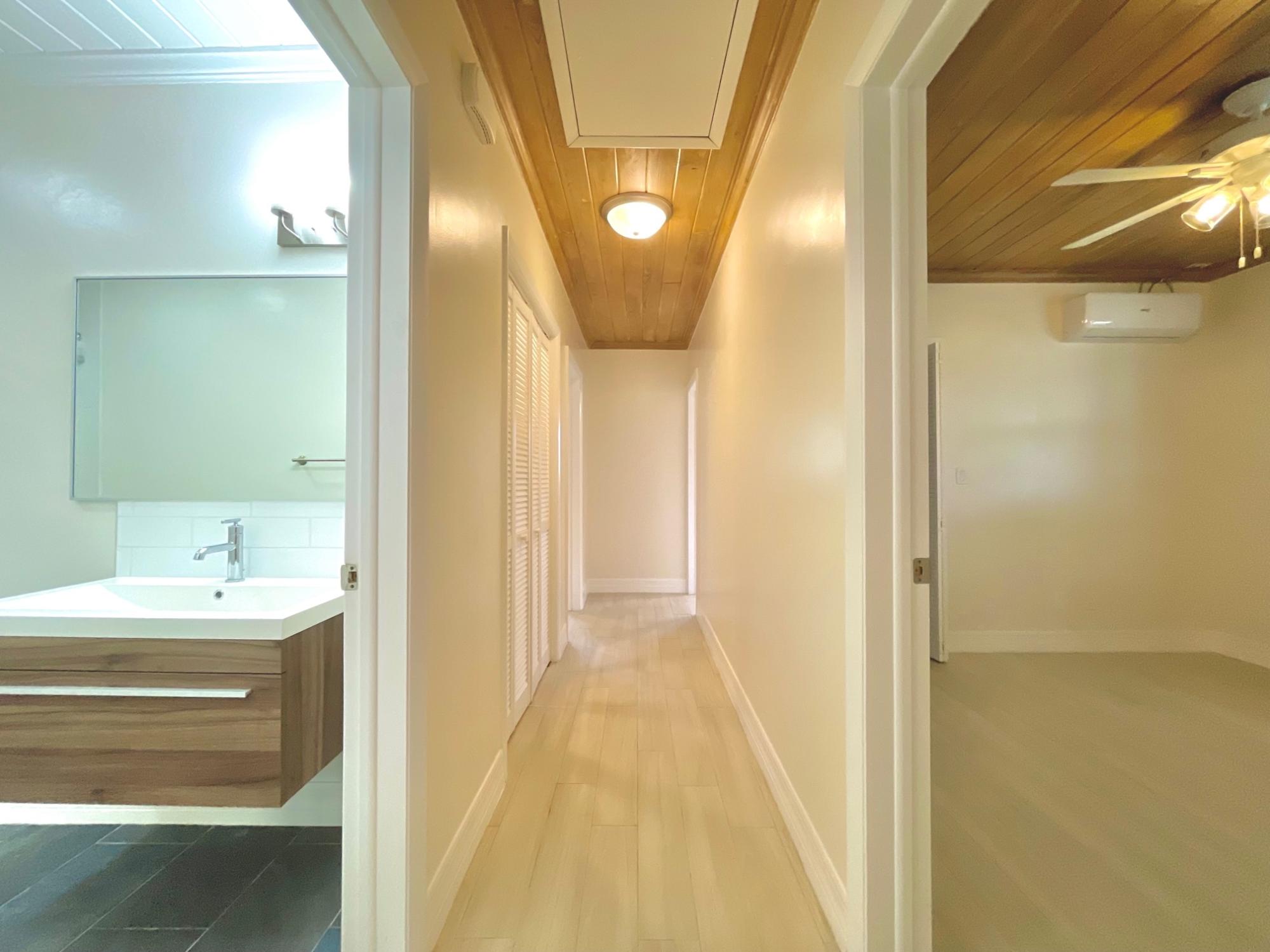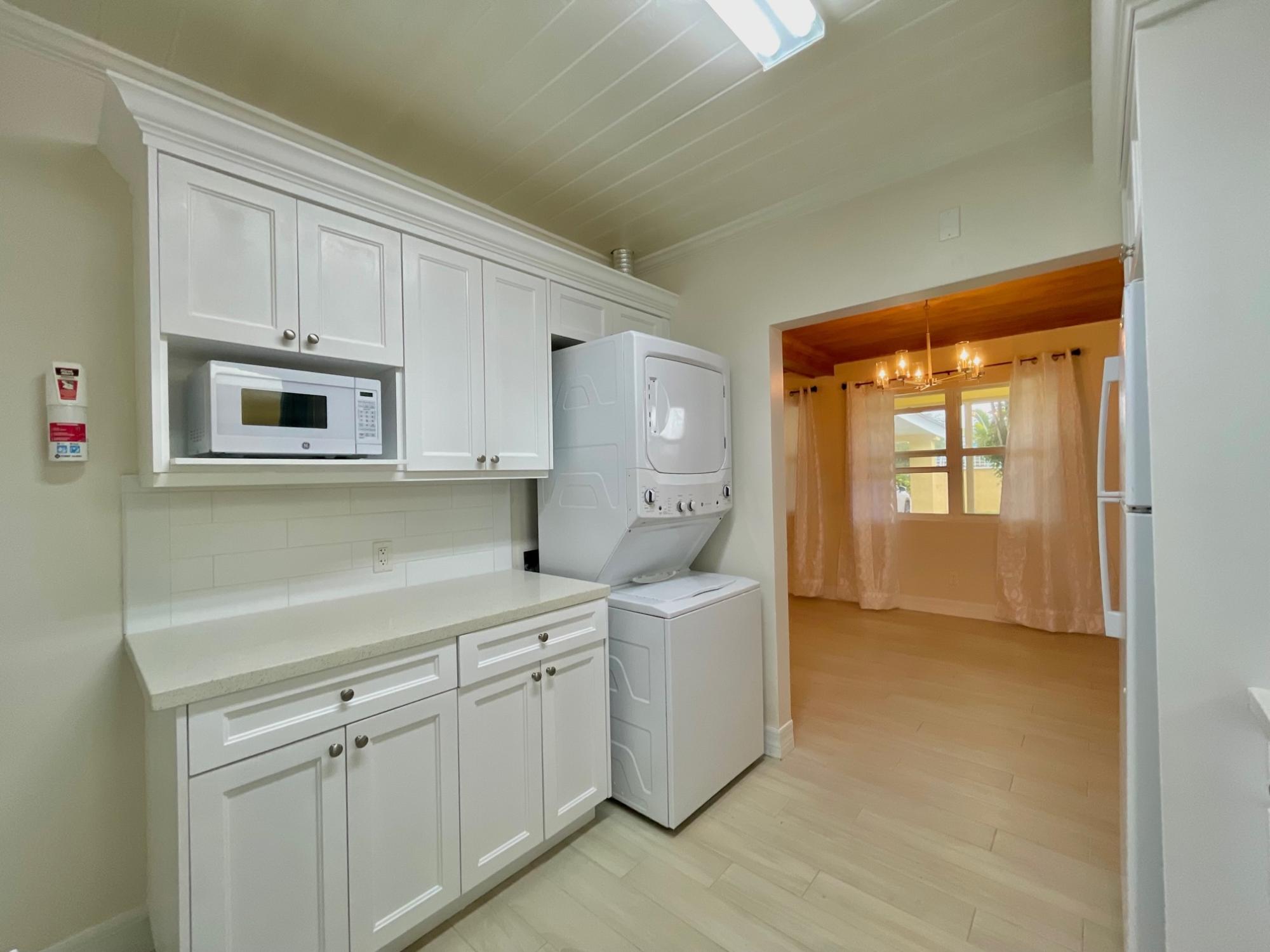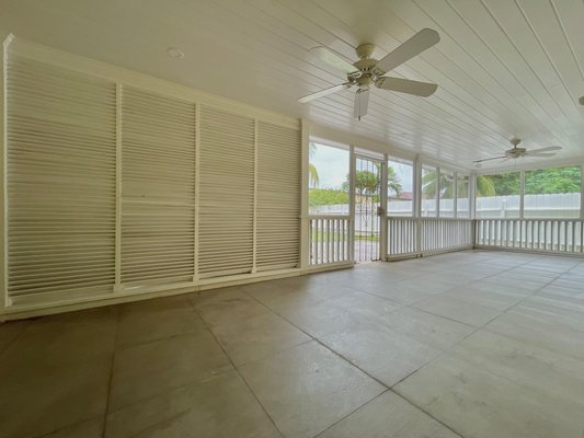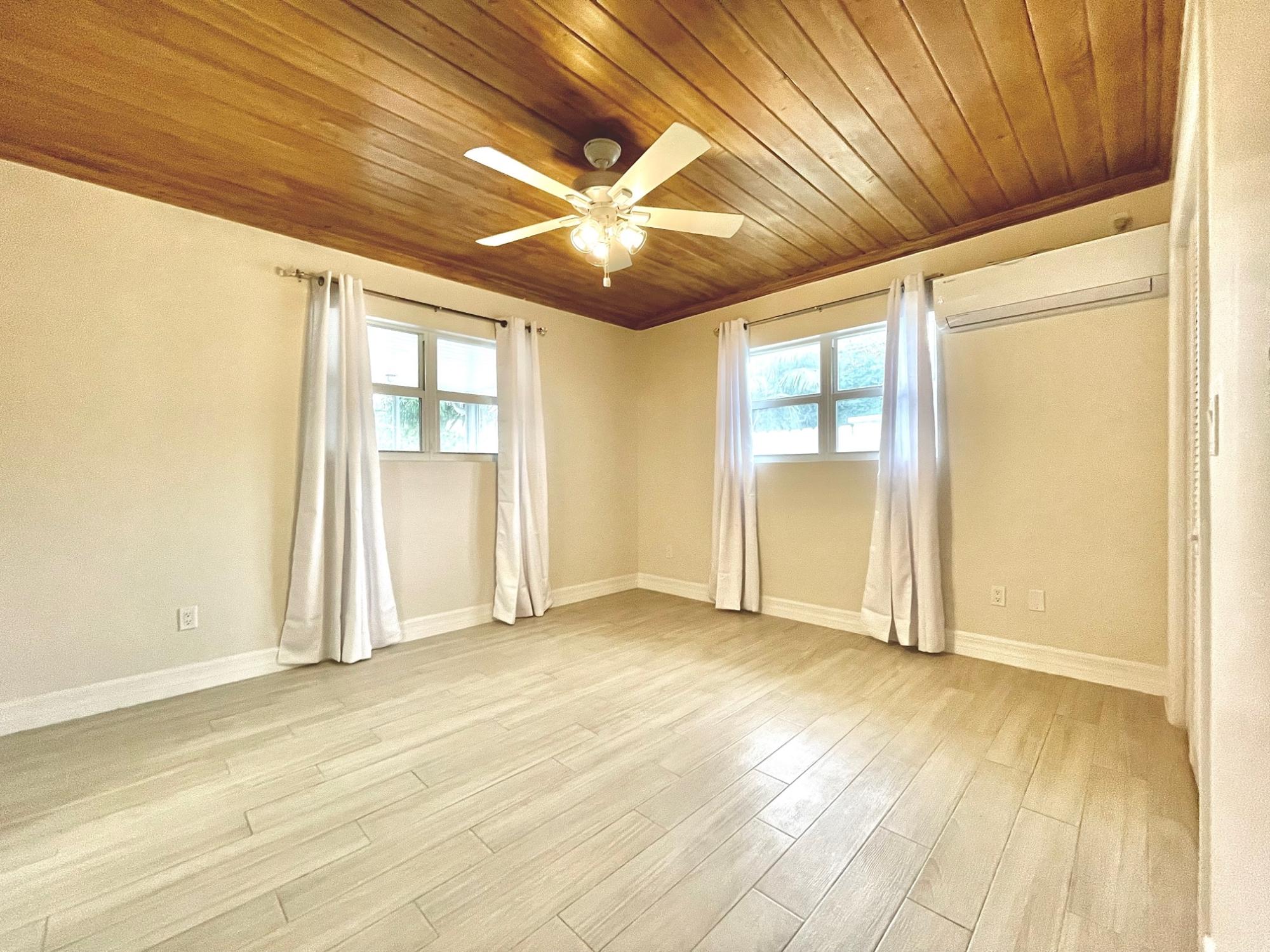 Renovated Bahamian style single-family home on Hampshire Street, Cable Beach in asking distance to restaurants, recreation, shopping, and the beach. There are two units on the property – 3 bedroom main house and the connected studio with its’ own entrance and patio. The property has ceramic tiles throughout, high efficiency split AC units, ceiling fans, LED bulbs and gas stoves. Water is provided through a pump system with cost included in the rent. The home is equipped with 2 stacked washer/dryer units, 2 kitchens, 3 covered and screened patios and 4 parking spaces within the gated, enclosed yard. There are hurricane impact windows and doors and security doors on each patio. The large, landscaped exterior is maintained at the owner’s expense. The studio is fully furnished and turnkey while the main house is offered appliances only.