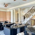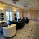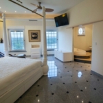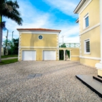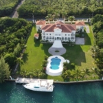 The lot is approximately an acre and the street/canal side is 209 ft x 255 ft deep. An 80ft dock equipped to supply 2 yachts with utilities such as electricity (110 and 220 Volt, 50 and 30 Amp), water supply, telephone and cable. The dock could be extended to the full width of the 200 ft bulwark. The property is enclosed with wire fencing on cement pillars and surrounded by undeveloped pineland. The building consist of the main house with 4 floors, a courtyard, a magnificent swimming pool, and 2 detached guesthouses each above oversized 2-car garages. State-of-the-art hurricane protection installed. All the windows have imported heavy duty impact hurricane resistant glass with thermo pane. Each window has a hidden rolling shutter which can be used to block the sun but also protects the windows from hurricanes. All the floors (first, second and third) in the house (approximately 15,900 sq/feet) have natural grey polished granite tiles (40 cm x 40 cm) and 10 ft (3 meters) high ceilings. The roof is tile and has a watch tower.